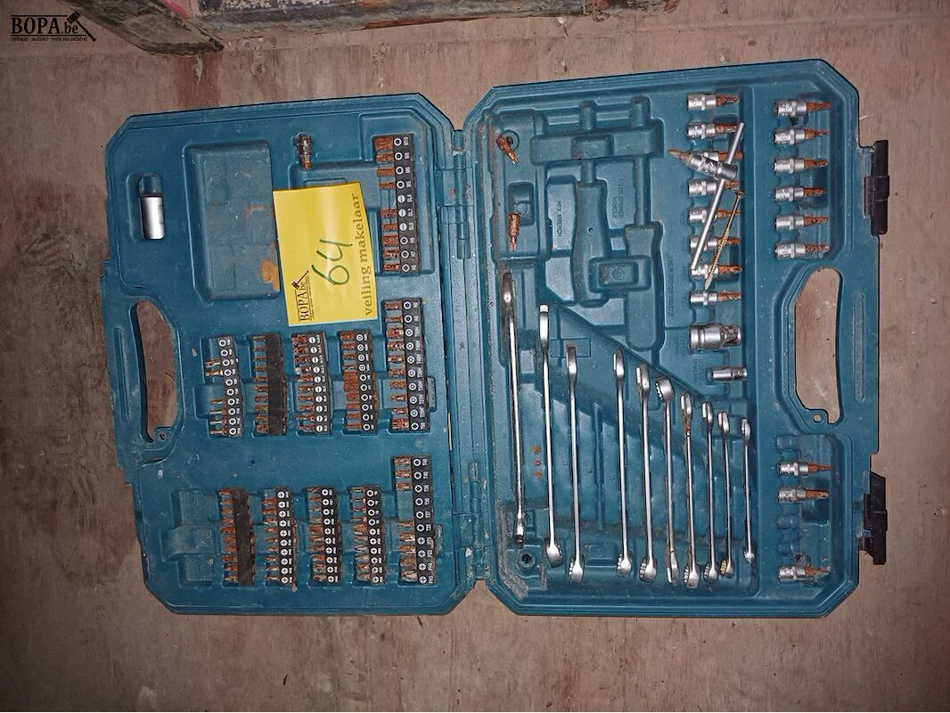 Materiaalkoffer met ringsleutels en bitsen, niet compleet