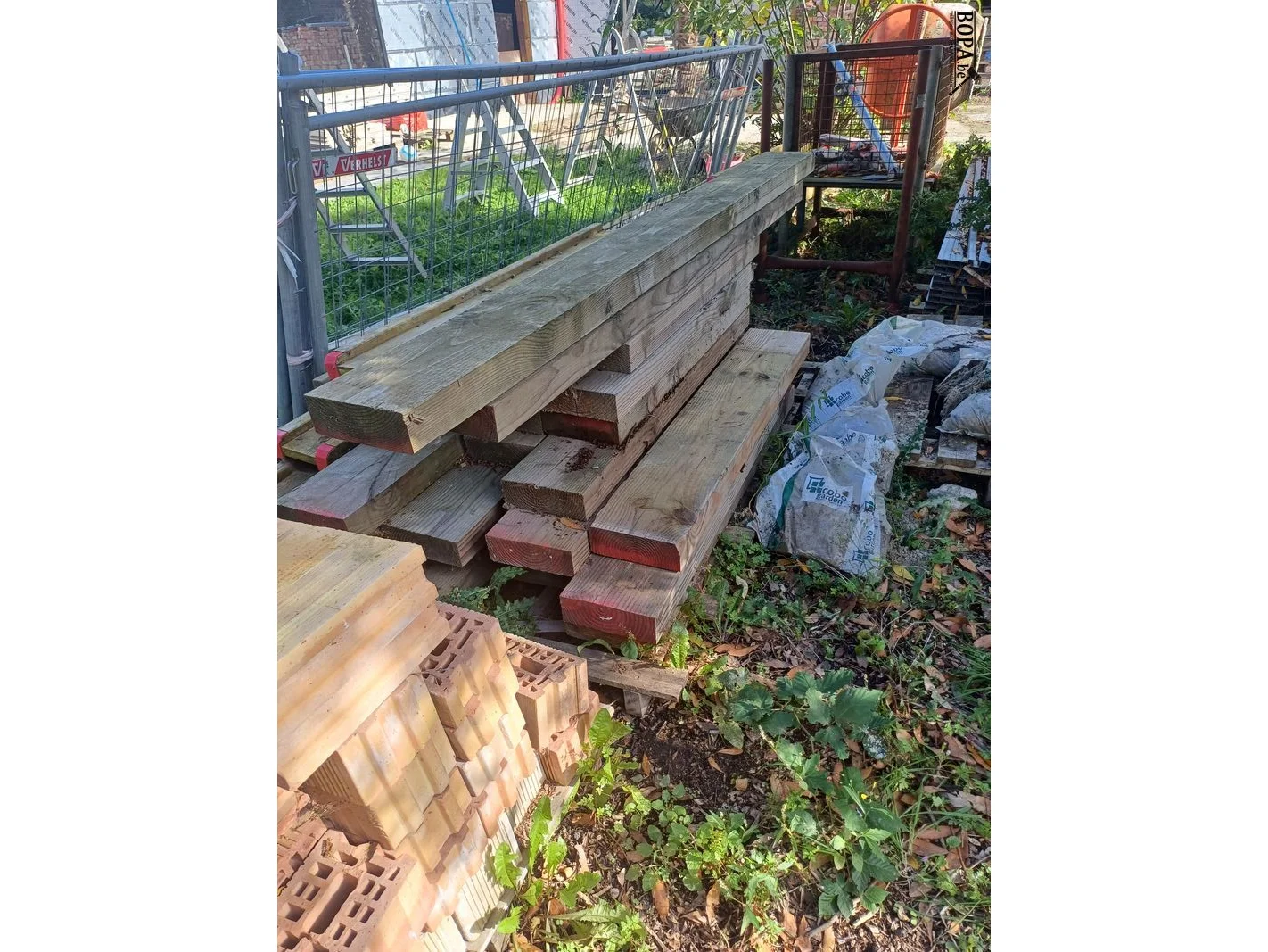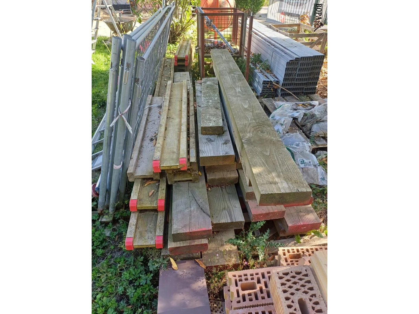 Totaal van ongeveer 32 stuks Doka balken en resthoutbaddens