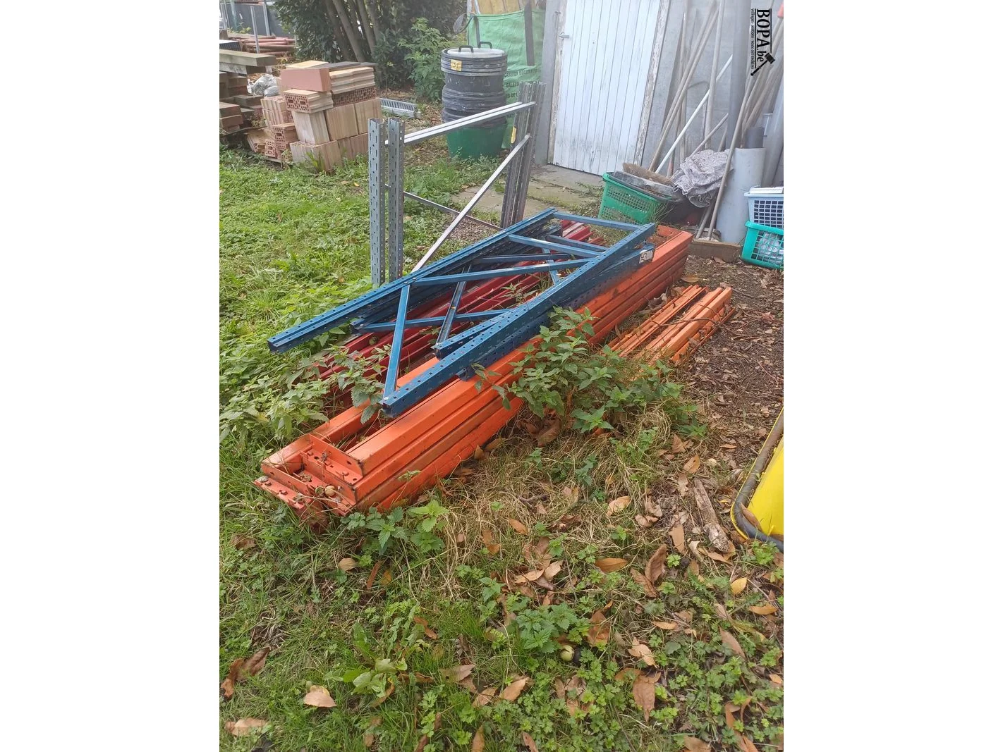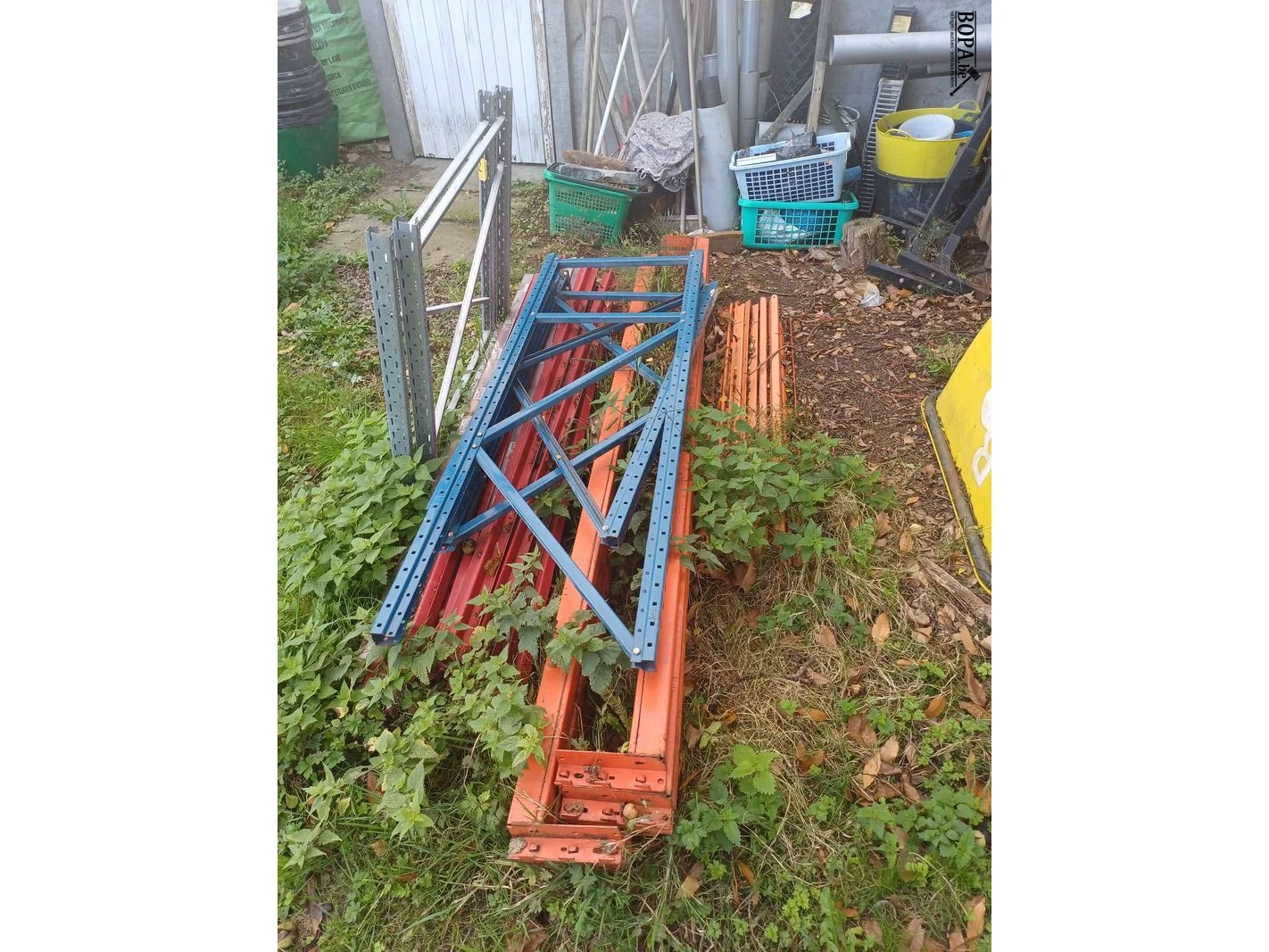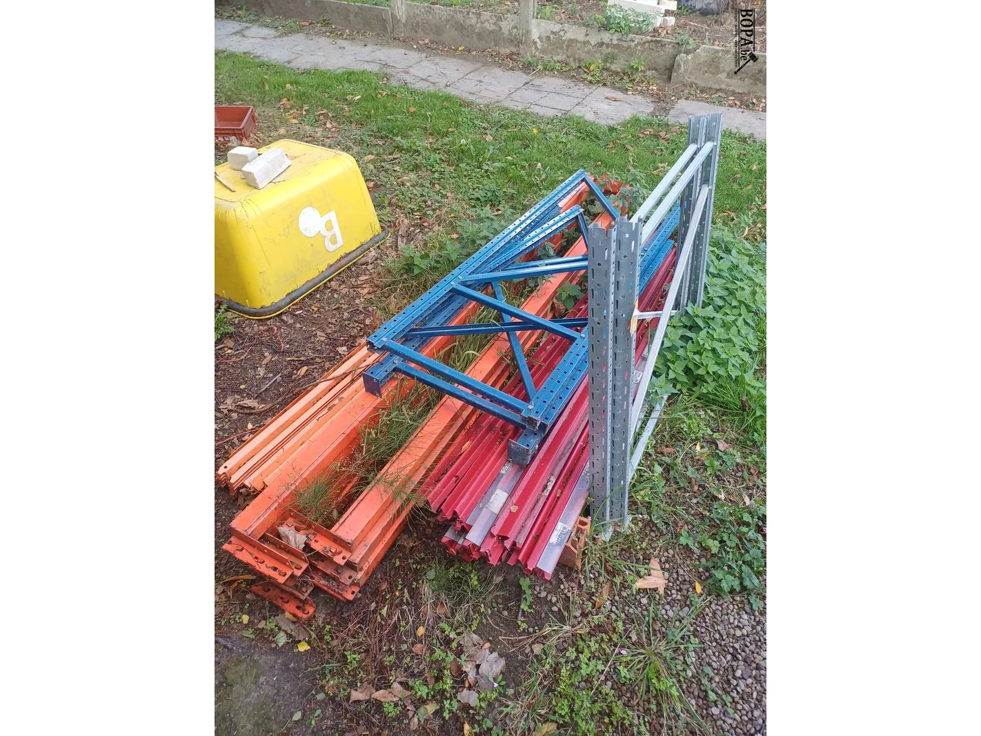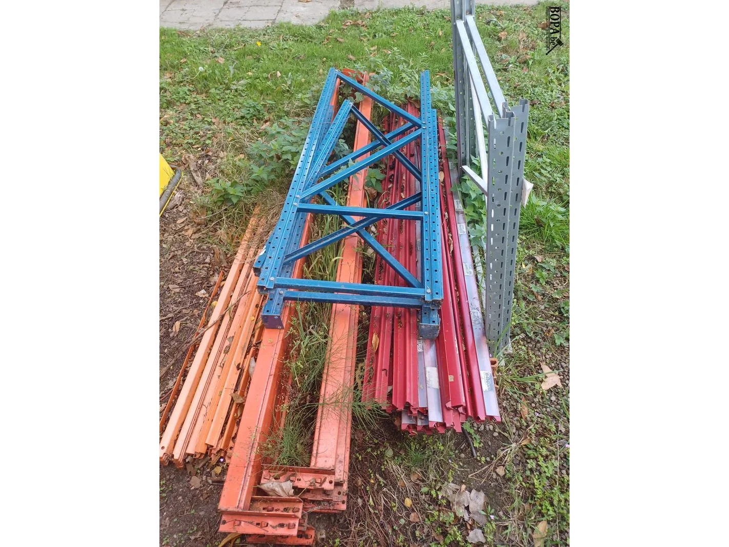 Metalen montagerek, met liggers van 250 cm, 4 staanders, samen totaal van ongeveer 45 stuks