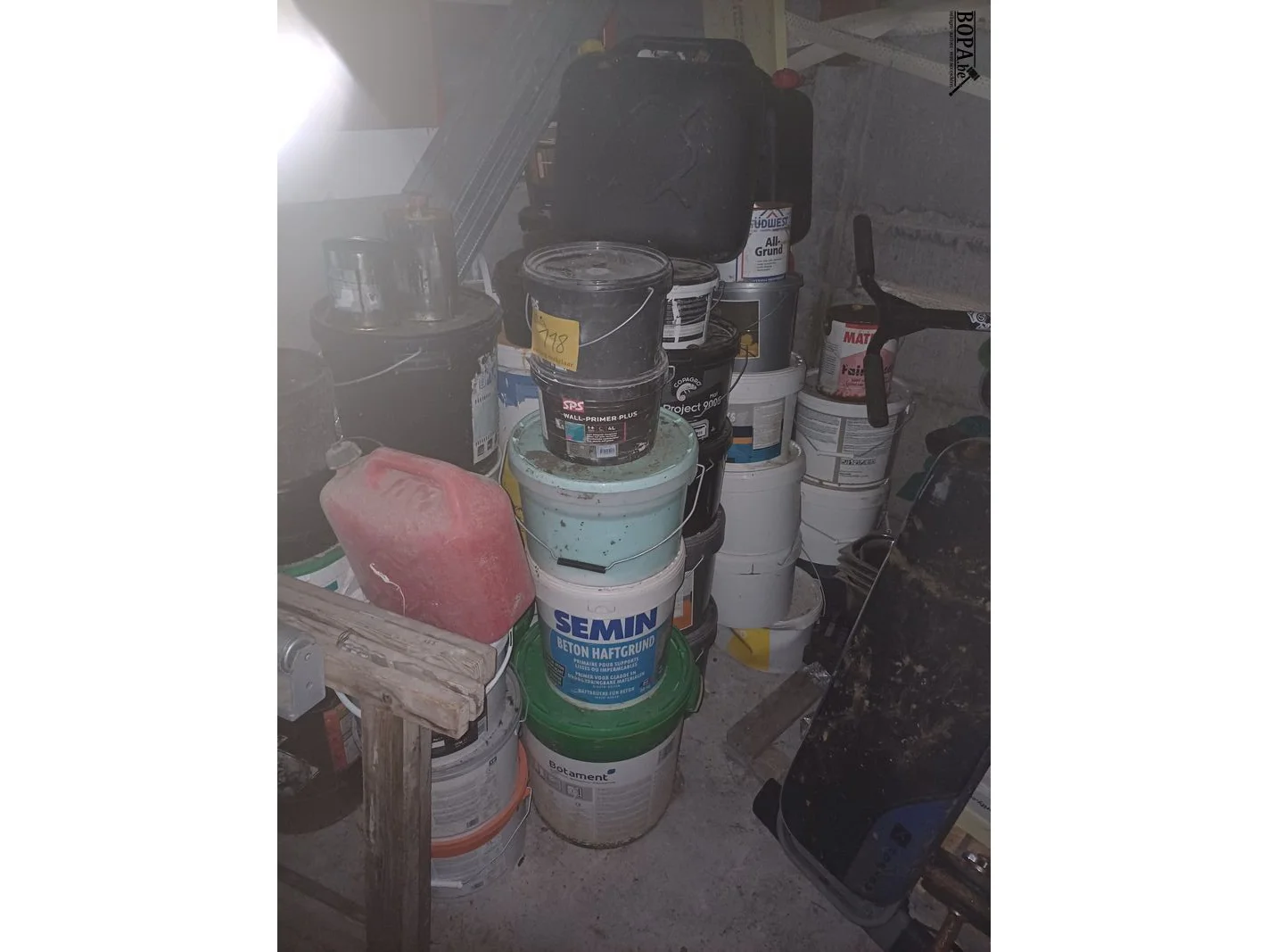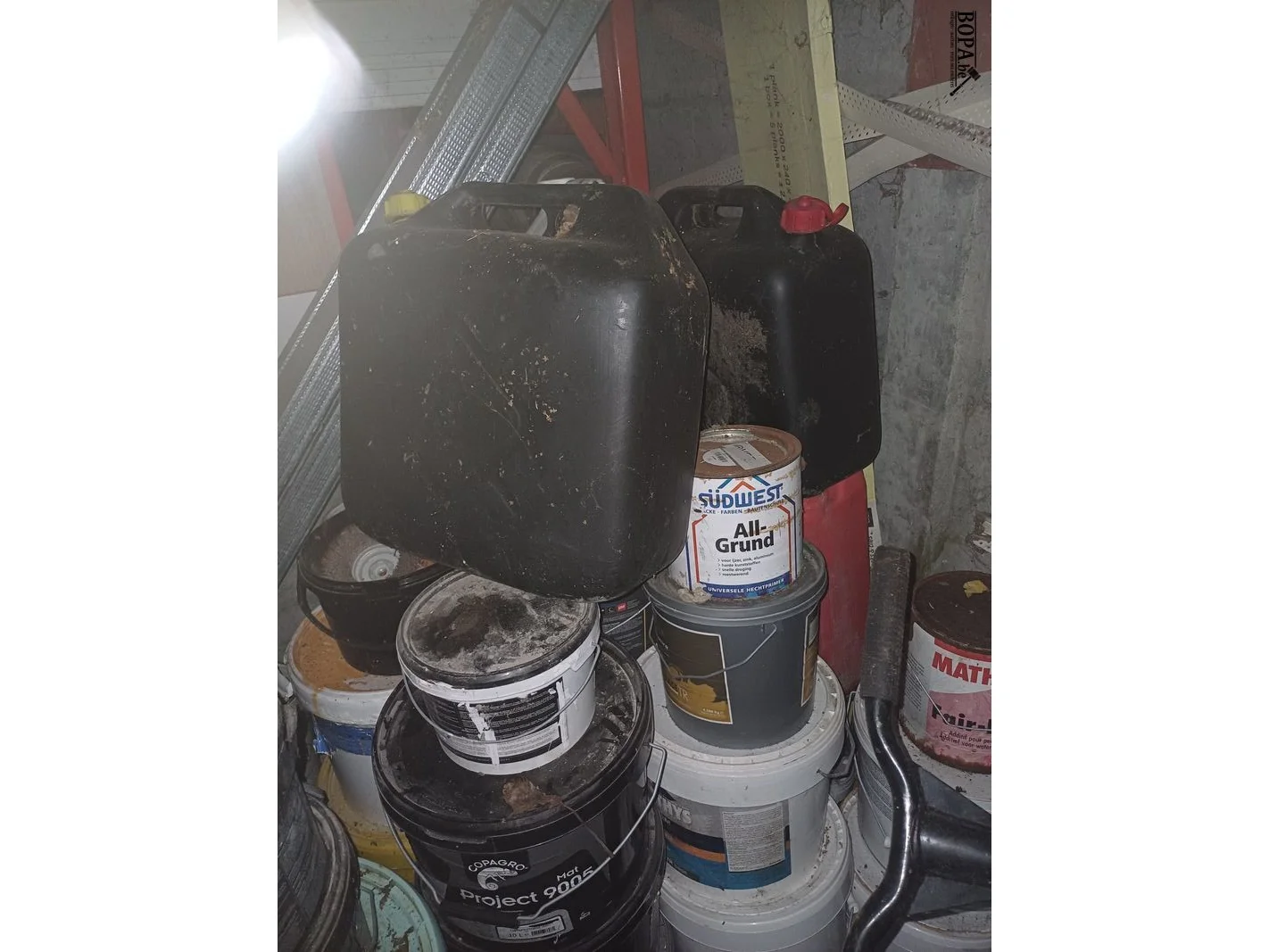 Aangebroken liquide producten en 2 brandstof bidons