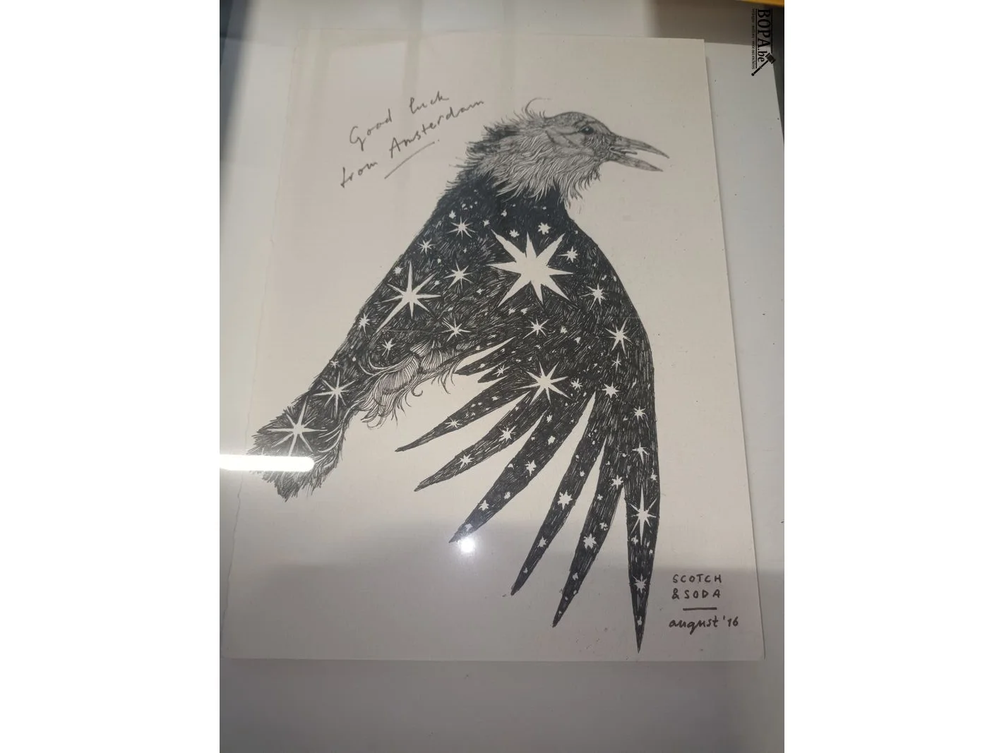 Unieke Scotch & Soda tekening in kader van Amsterdam. 33 x 42 cm.