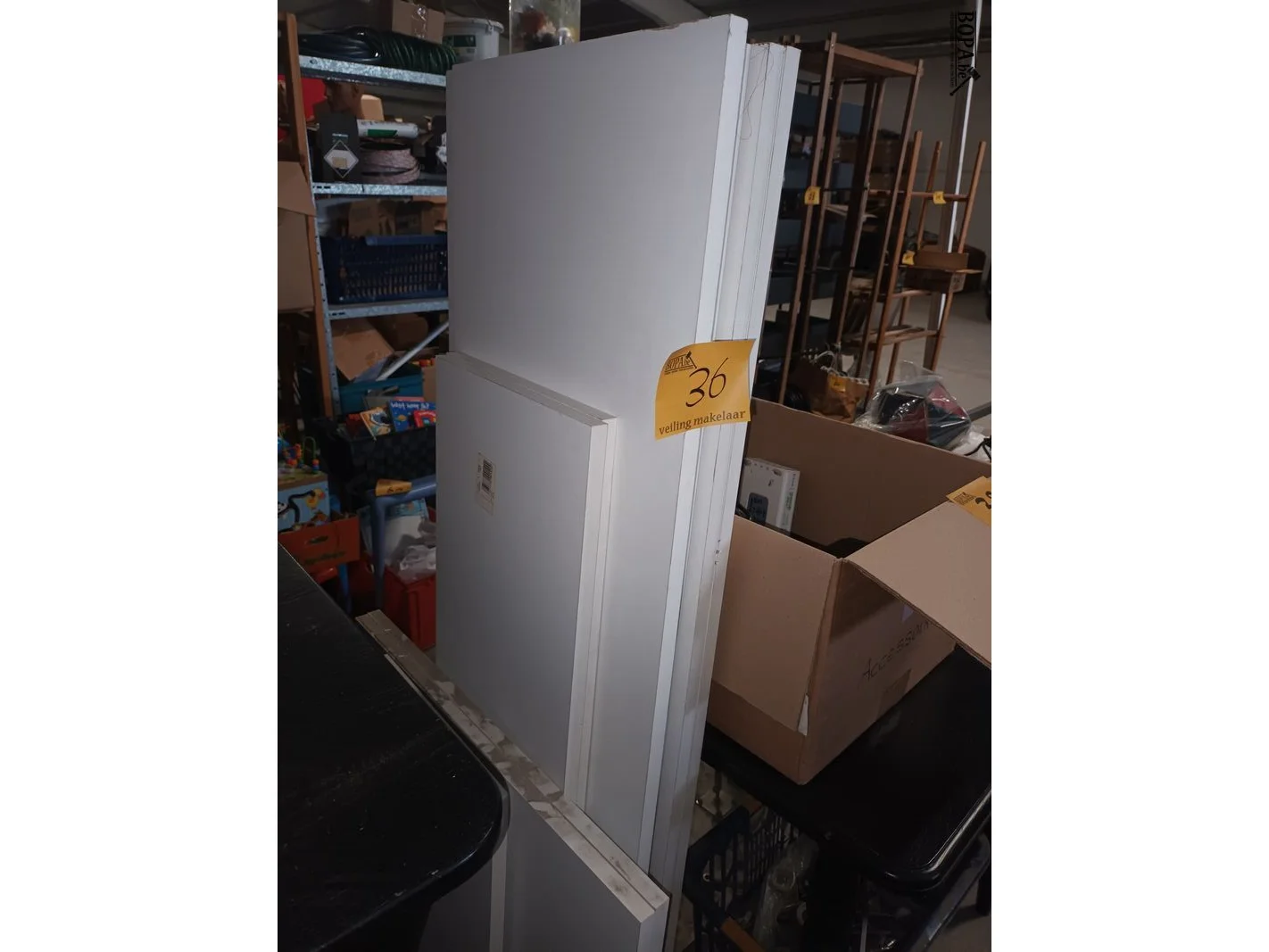 6 planken van 40 x 150 cm, 2 planken van 30 x 120 cm, 2 planken van 60 x 80 cm en 1 plank van 30 x 80 cm.