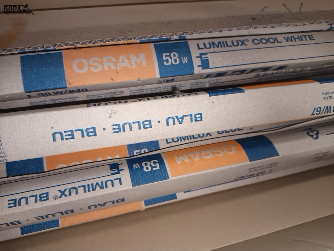Lot 42 - tl-lampen wit en blauw. 19 stuks