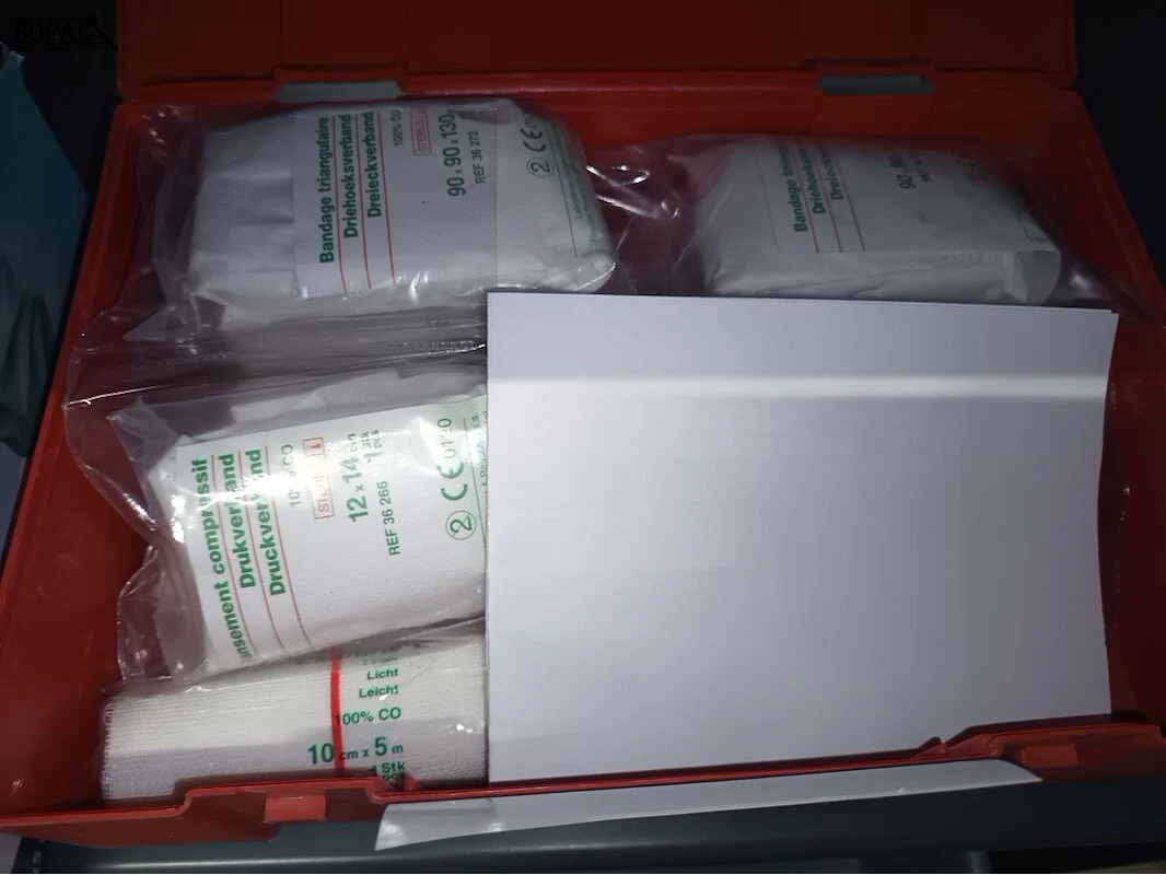Ehbo kistje en mondmaskers.