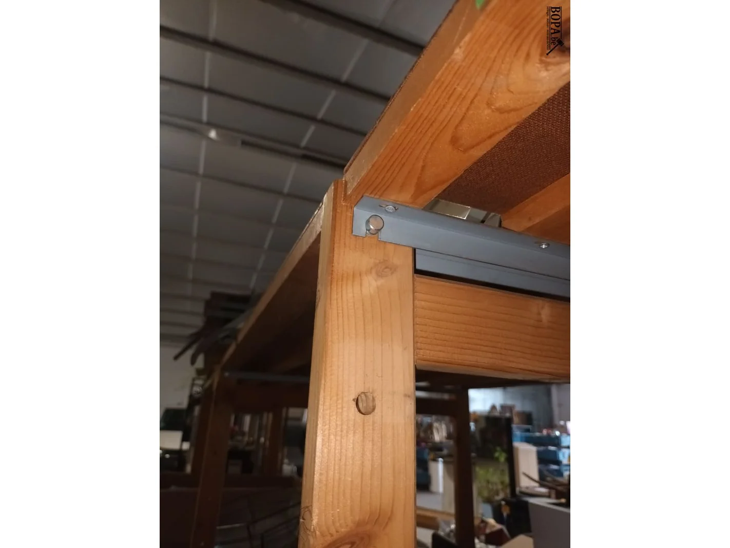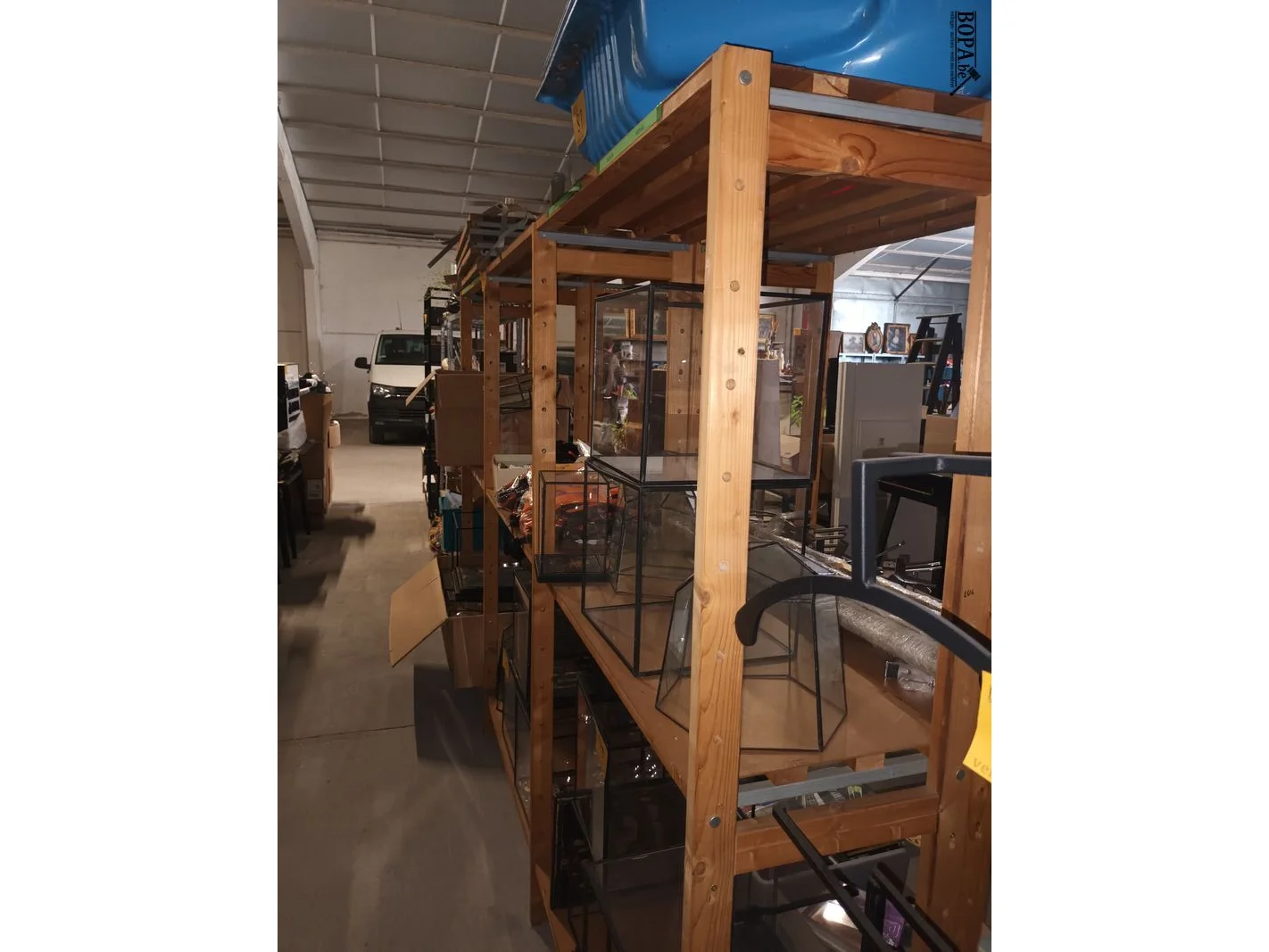 Houten rek. 303 x 40 x 180 cm.