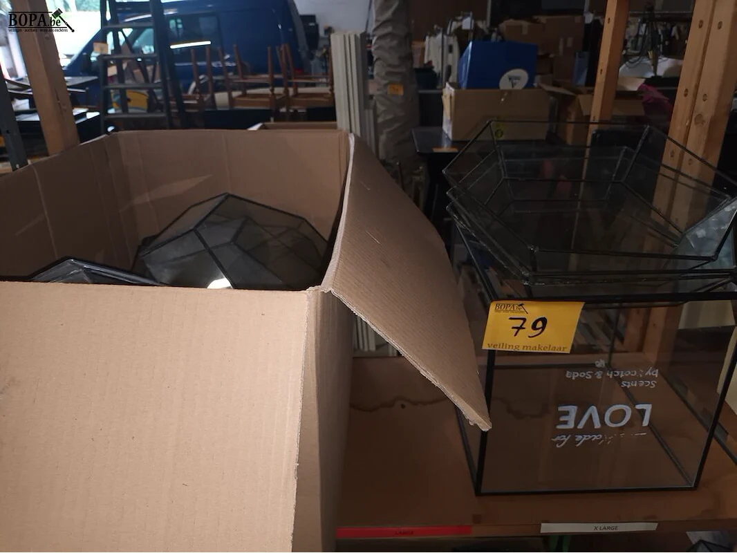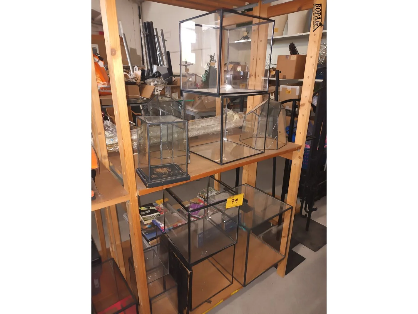 Lot winkel vitrines. Kubusvormig of serre vormig.