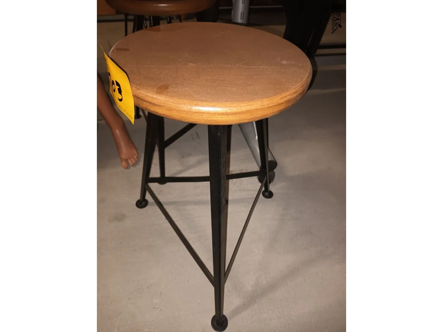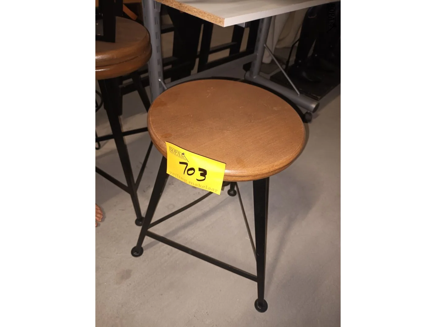 3 krukjes met houten zitting en metalen onderstel. Diameter 31 cm. Hoogte 55 cm.