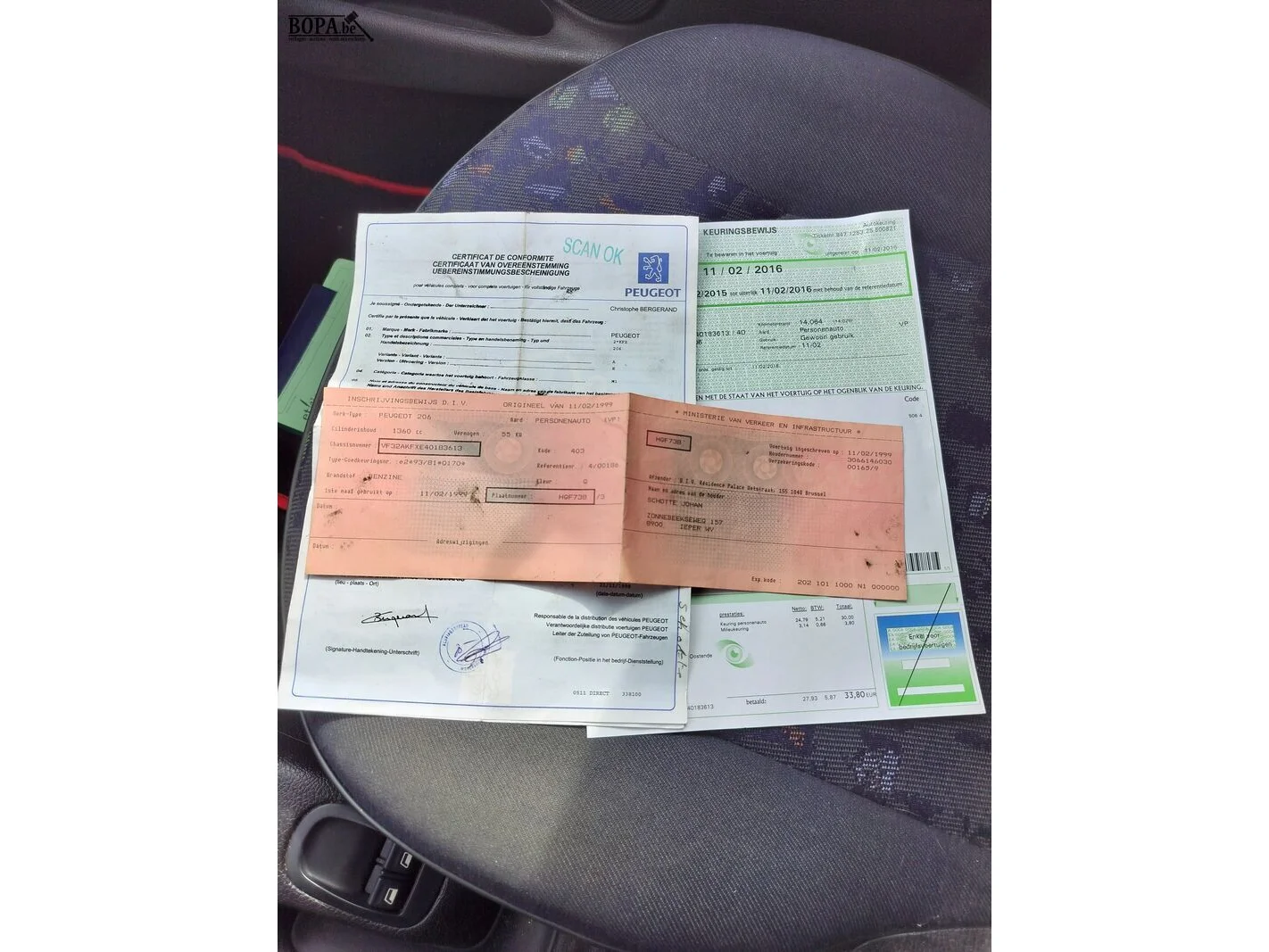 Merk PEUGEOT Model 206 Datum eerste inschrijving 11/02/1999 KM stand 14075 KM Chassisnummer VF32AKFXE40183613 Brandstof Benzine Kleur Rood Motorinhoud 1360 cm³ Motorvermogen 55 KW Milieuklasse ** Euro Schakeling Manueel - 5 versnellingen Aantal sleutels 1 Inschrijvingsbewijs Aanwezig Gelijkvormigheidsattest Aanwezig Keuringsattest Aanwezig Opmerkingen Uitlaat - staat Bijzonderheden / schade / opties Rijdende staat Propere wagen Elektrische ramen vooraan Pioneer radio/cassette Schuifdak
