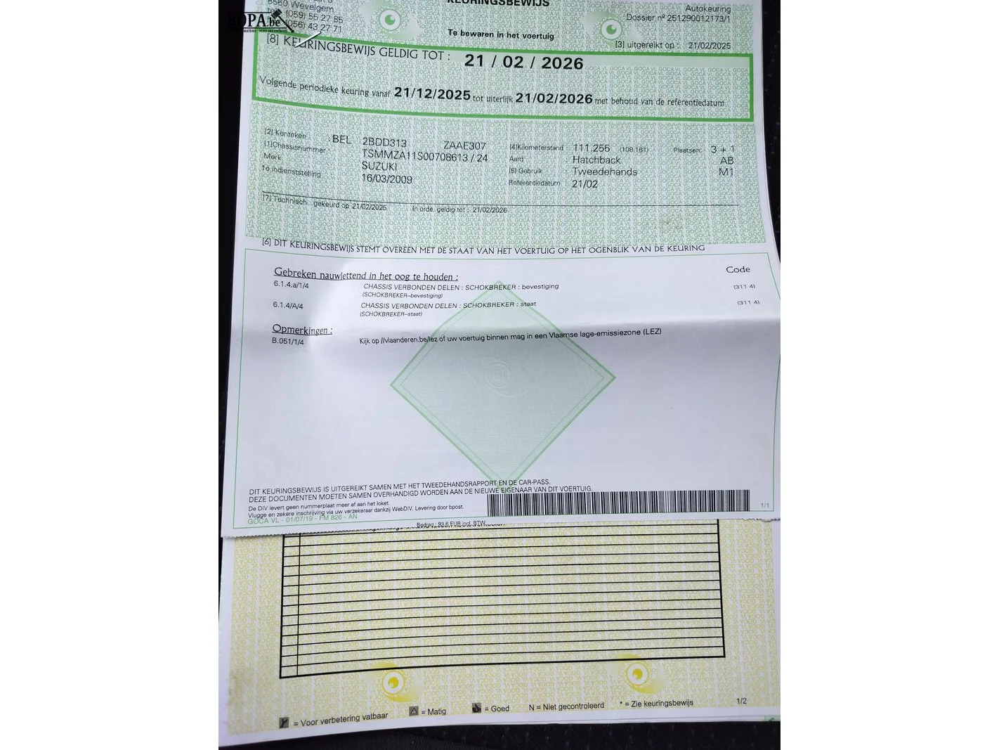 Merk SUZUKI Model Swift Datum eerste inschrijving 16/03/2009 KM stand 112185 KM Chassisnummer TSMMZA11S00708613 Brandstof Benzine Kleur Wit Motorinhoud 1328 cm³ Motorvermogen 68 KW Milieuklasse 4 Euro Schakeling Manueel - 5 versnellingen Aantal sleutels 1 Inschrijvingsbewijs Deel 1 Aanwezig Deel 2 Niet aanwezig Gelijkvormigheidsattest Aanwezig Keuringsattest Aanwezig Opmerkingen Chassis verbonden delen - Schokbreker Bijzonderheden / schade / opties Rijdende staat Lichte erosievlek op motorkap Deukje in linker voorflank Gebruiksporen op koetswerk Barstje in voorbumper Airco 3-deurs Elektrische vergrendeling Ingebouwde radio/cd