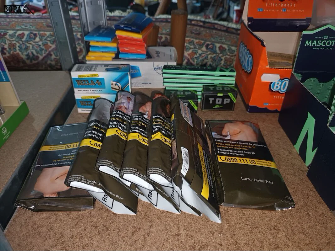 Lot met sigaretten, roltabak, filters, hulzen en sigarettenblaadjes.