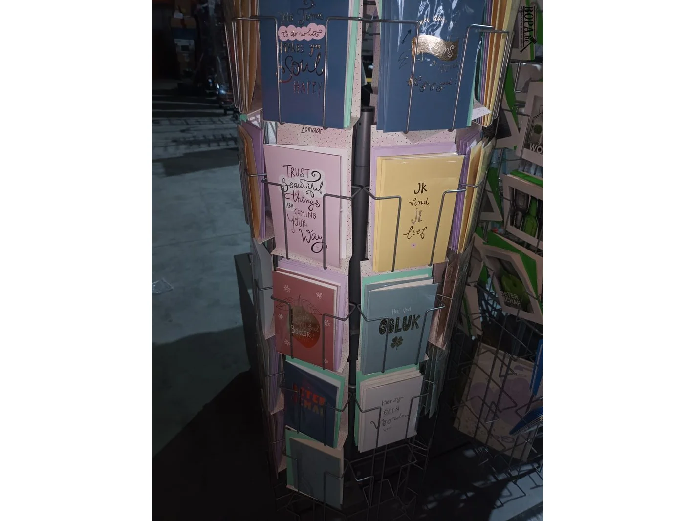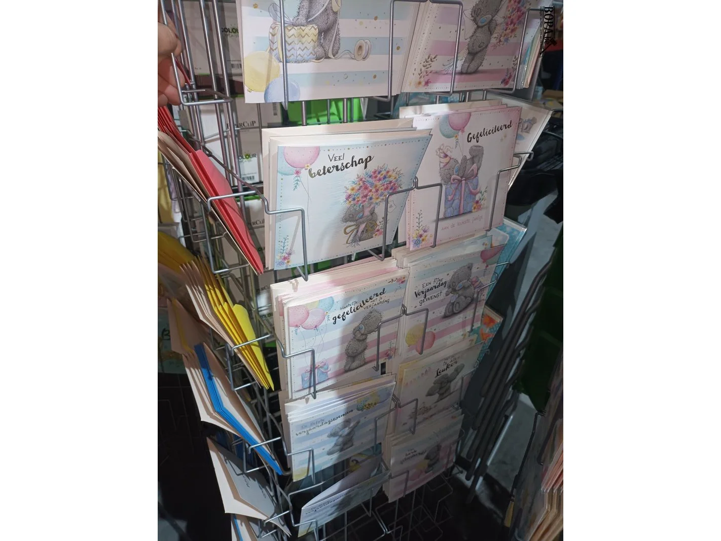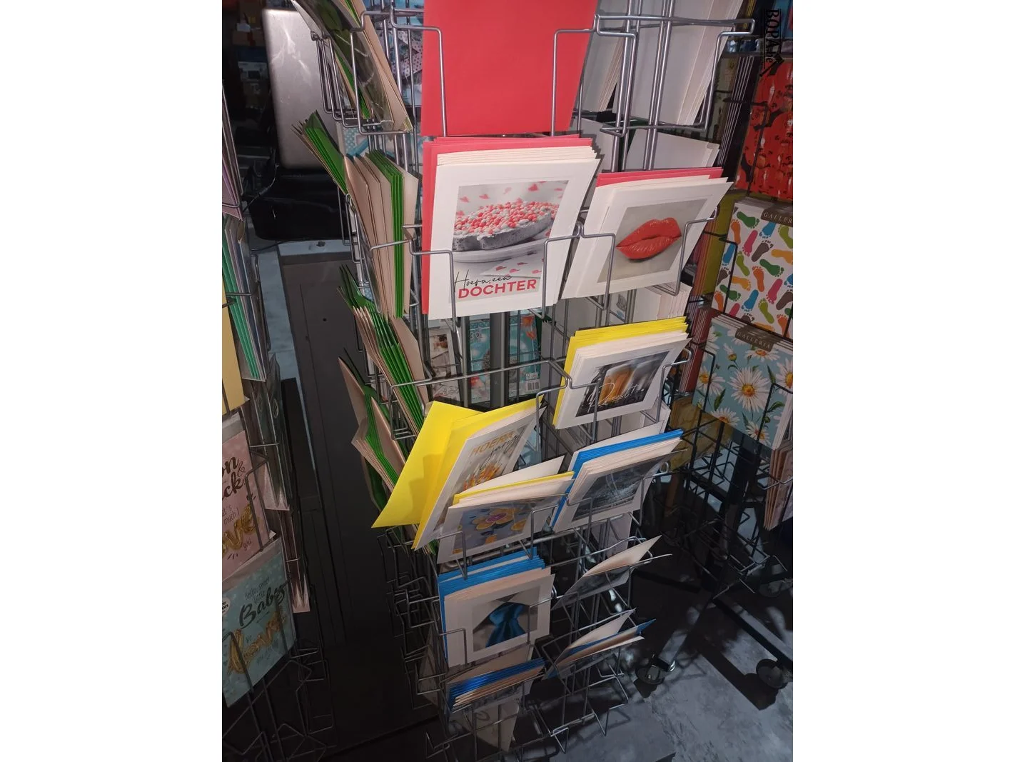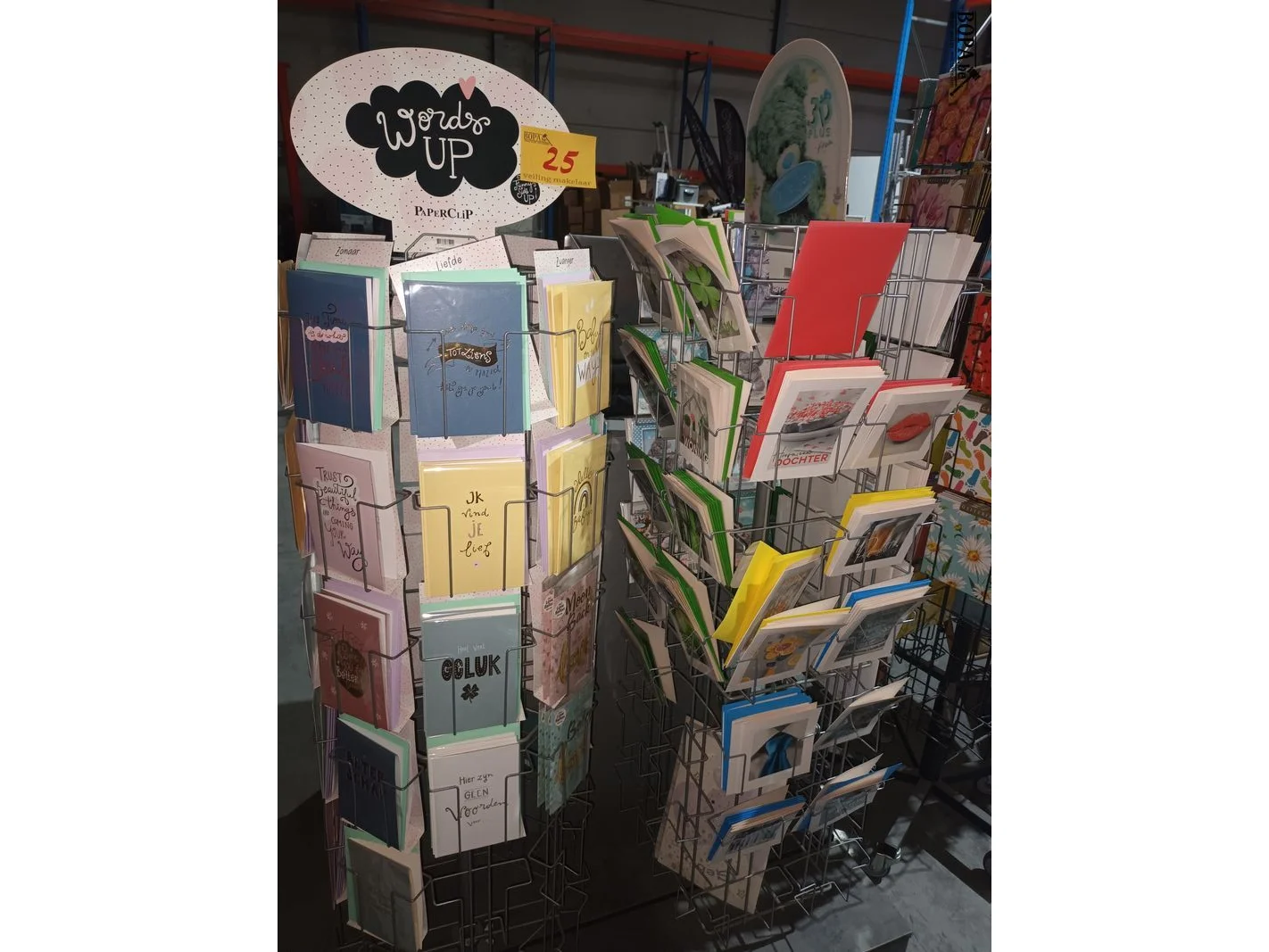 2 kaartenmolens met kaarten bevestigd op 1 voet. 100 x 50 x 150 cm.