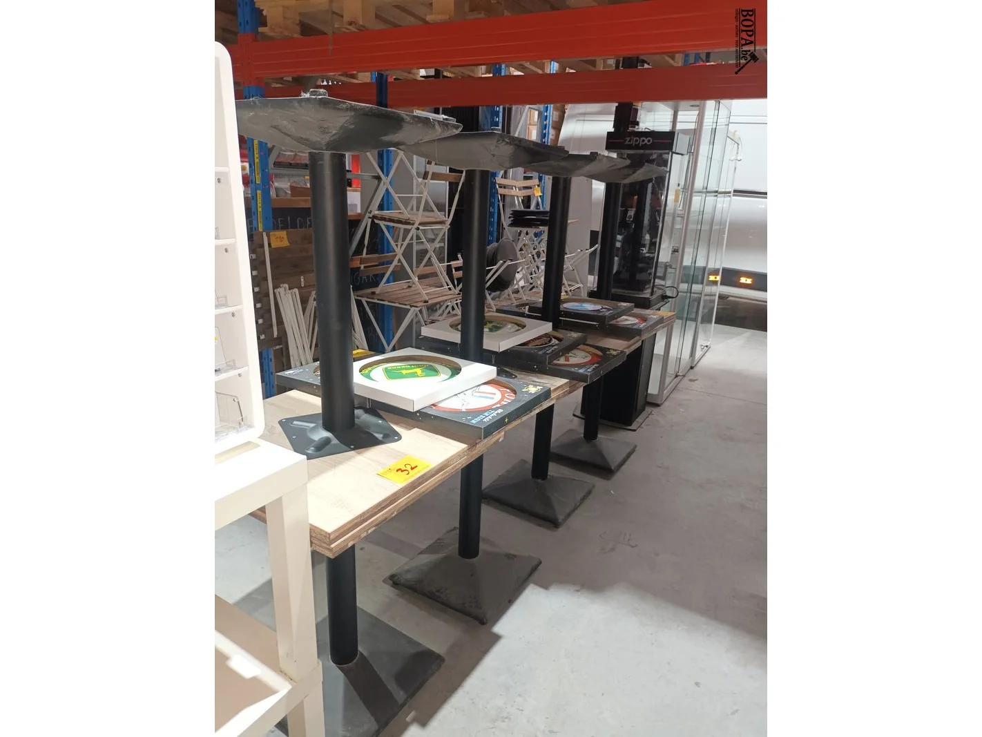 Vierkante tafel op metalen voet. 8 stuks. 60 x 60 x 75 cm.