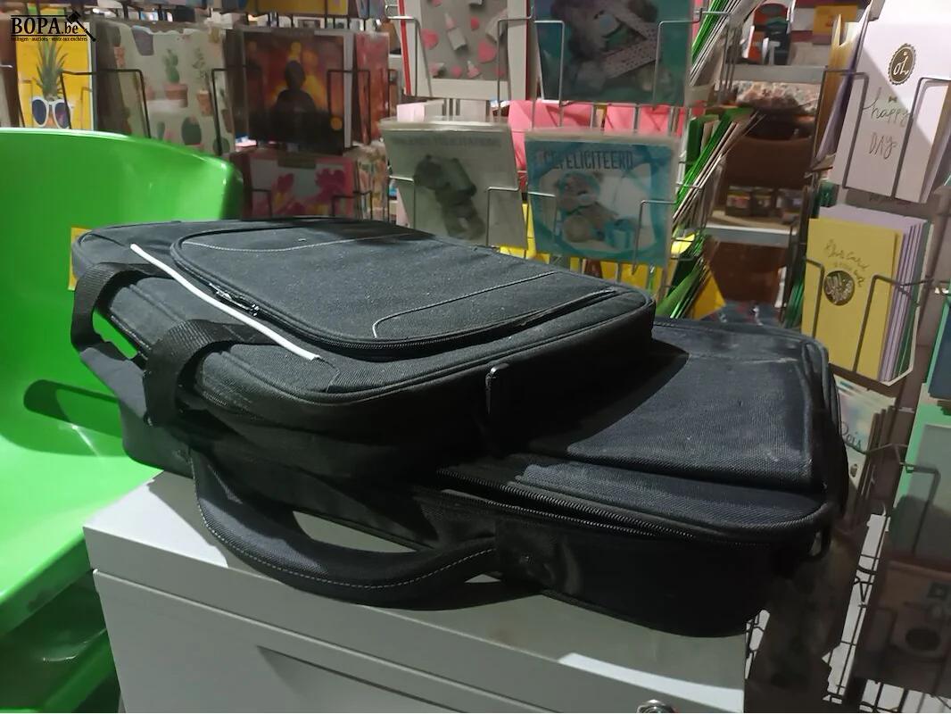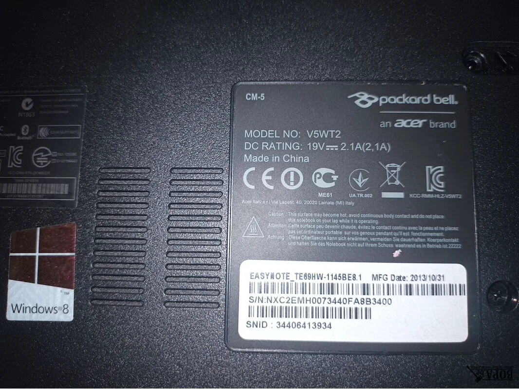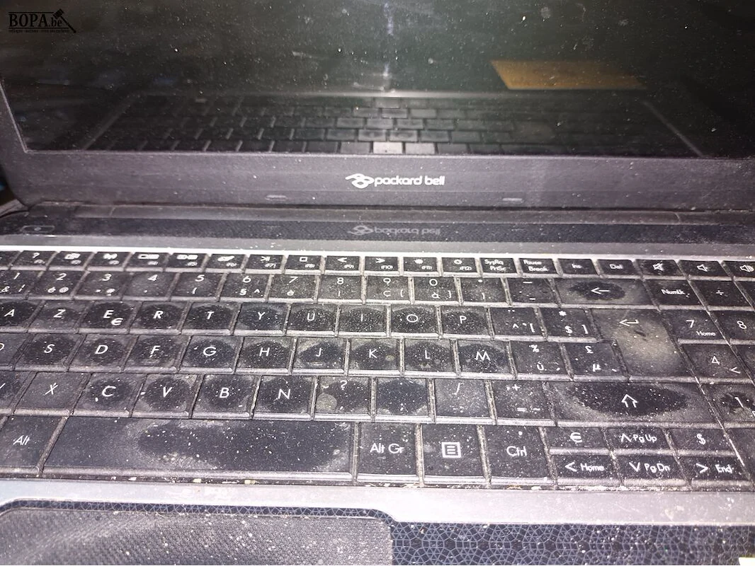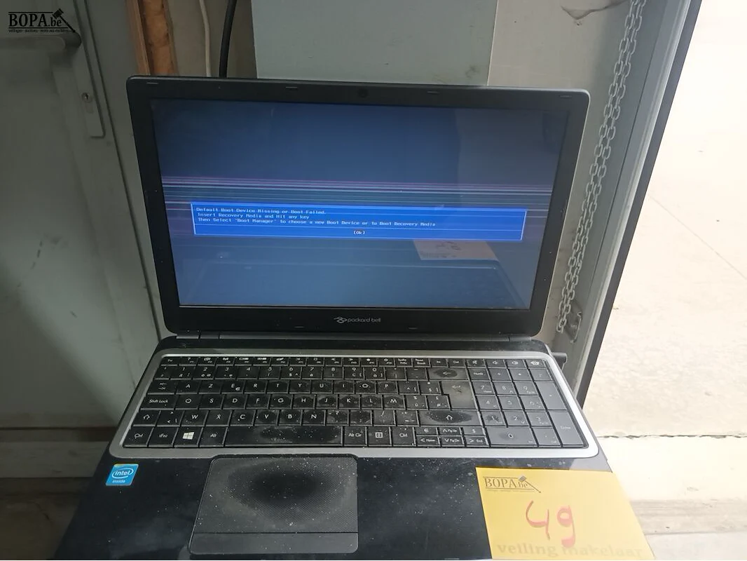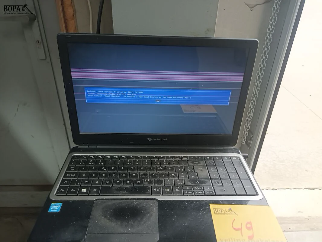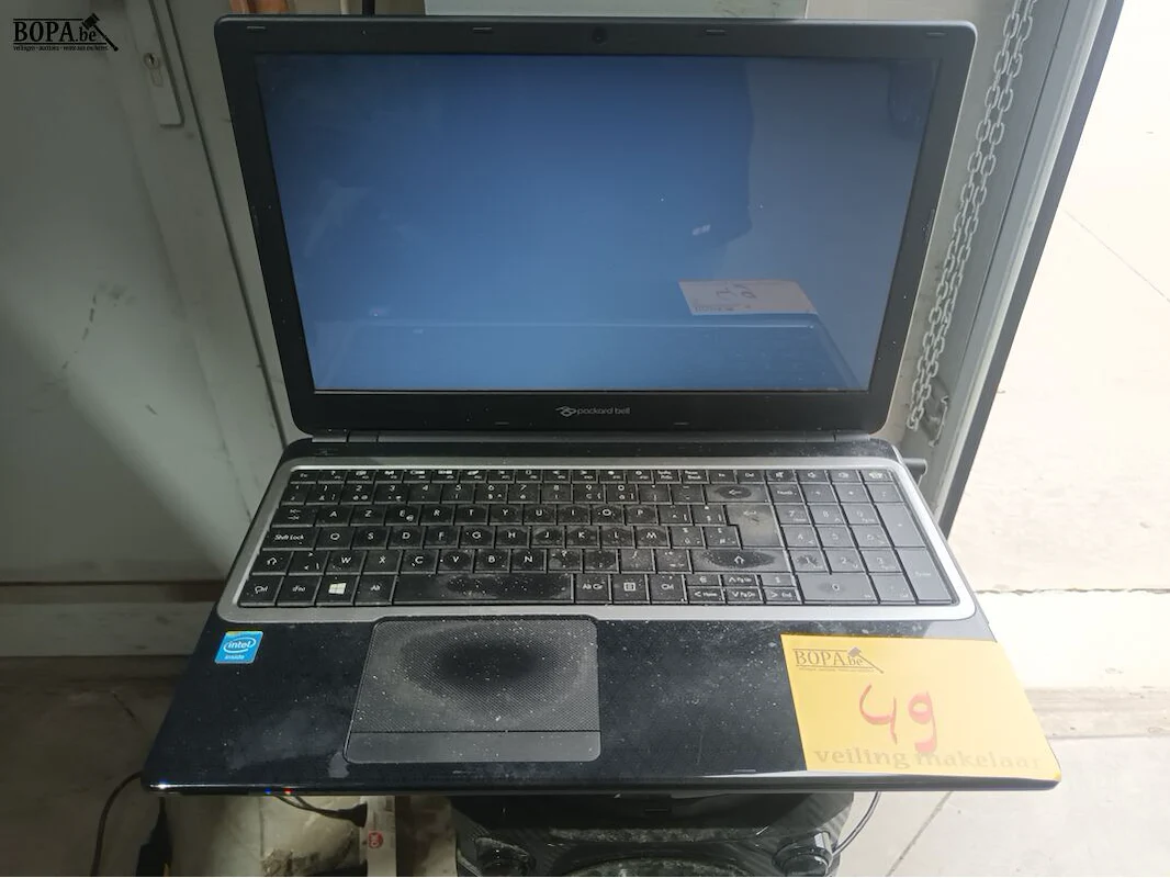 2 draagtassen voor laptops en een laptop Packard Bell model V5WT2. Het scherm is defect.
