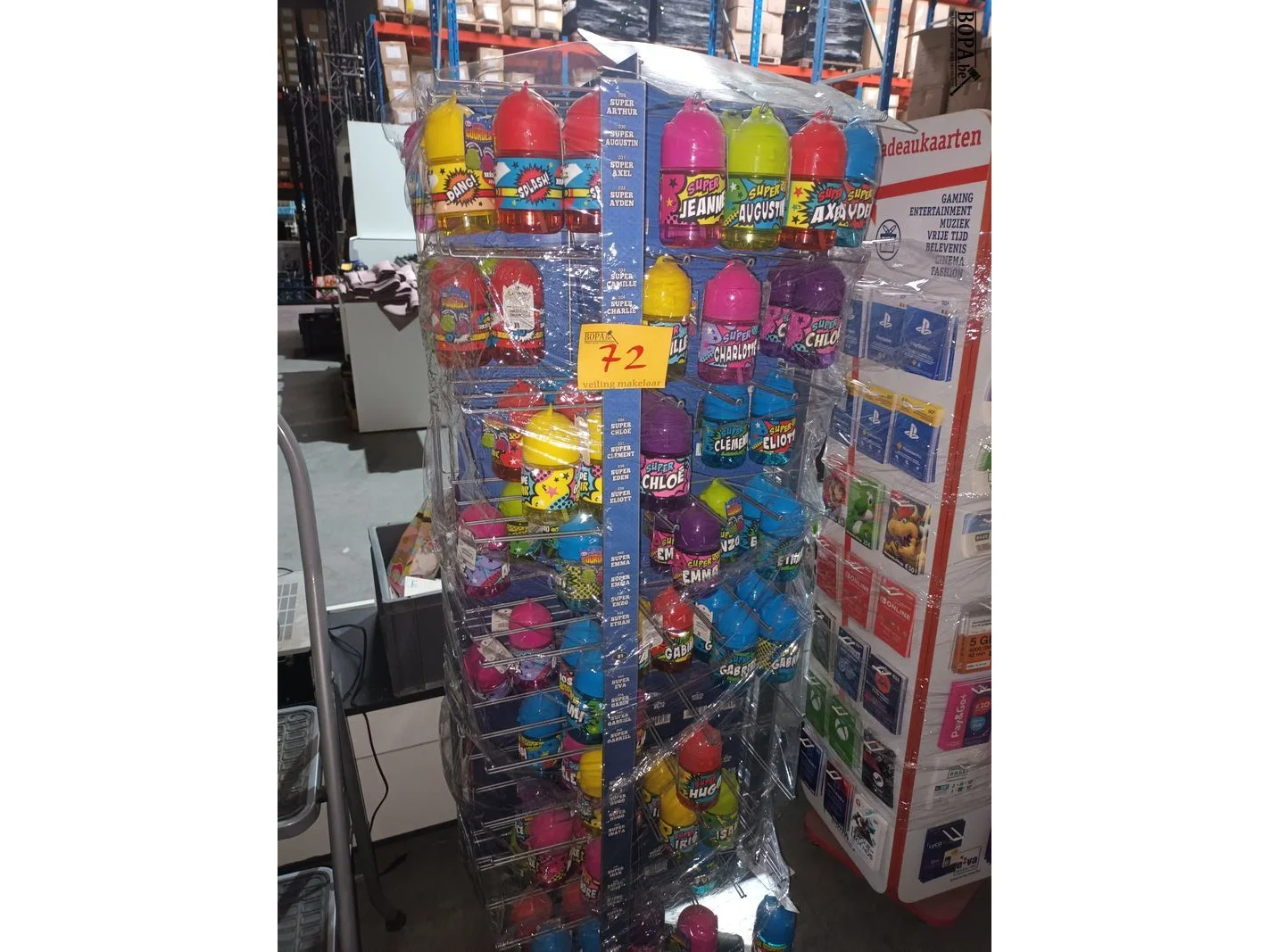 Display molen met drinkflessen Super Heroes. Hoogte 160 cm.