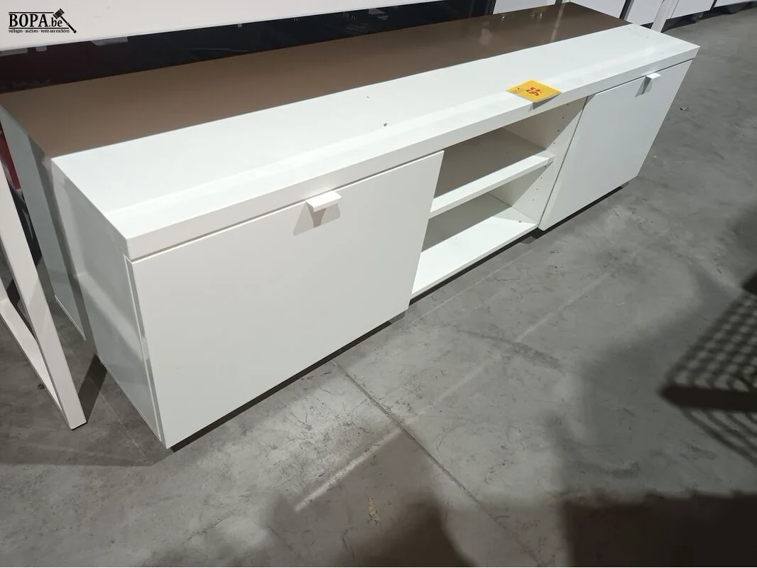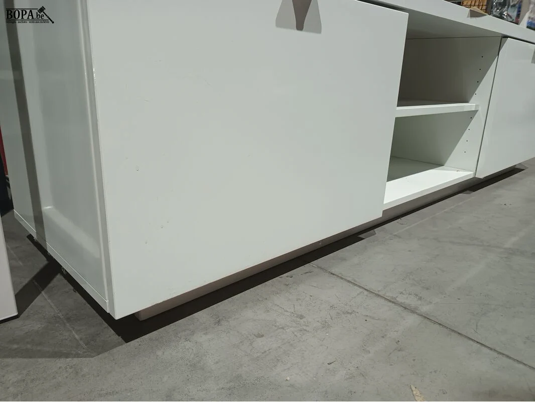 Witte gelakte lage kast. 160 x 41 x 45 cm.