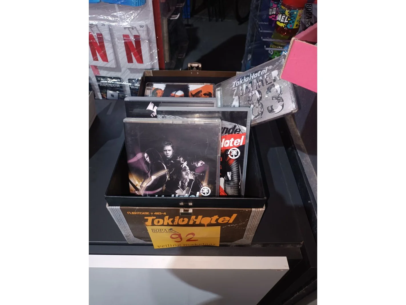 Kistje Tokio Hotel met 3 dvd’s en 1 cd.