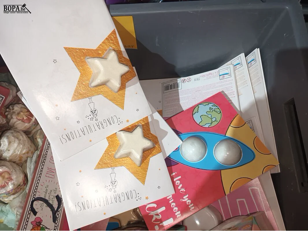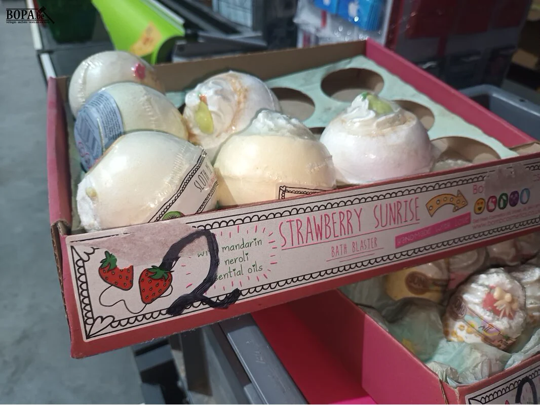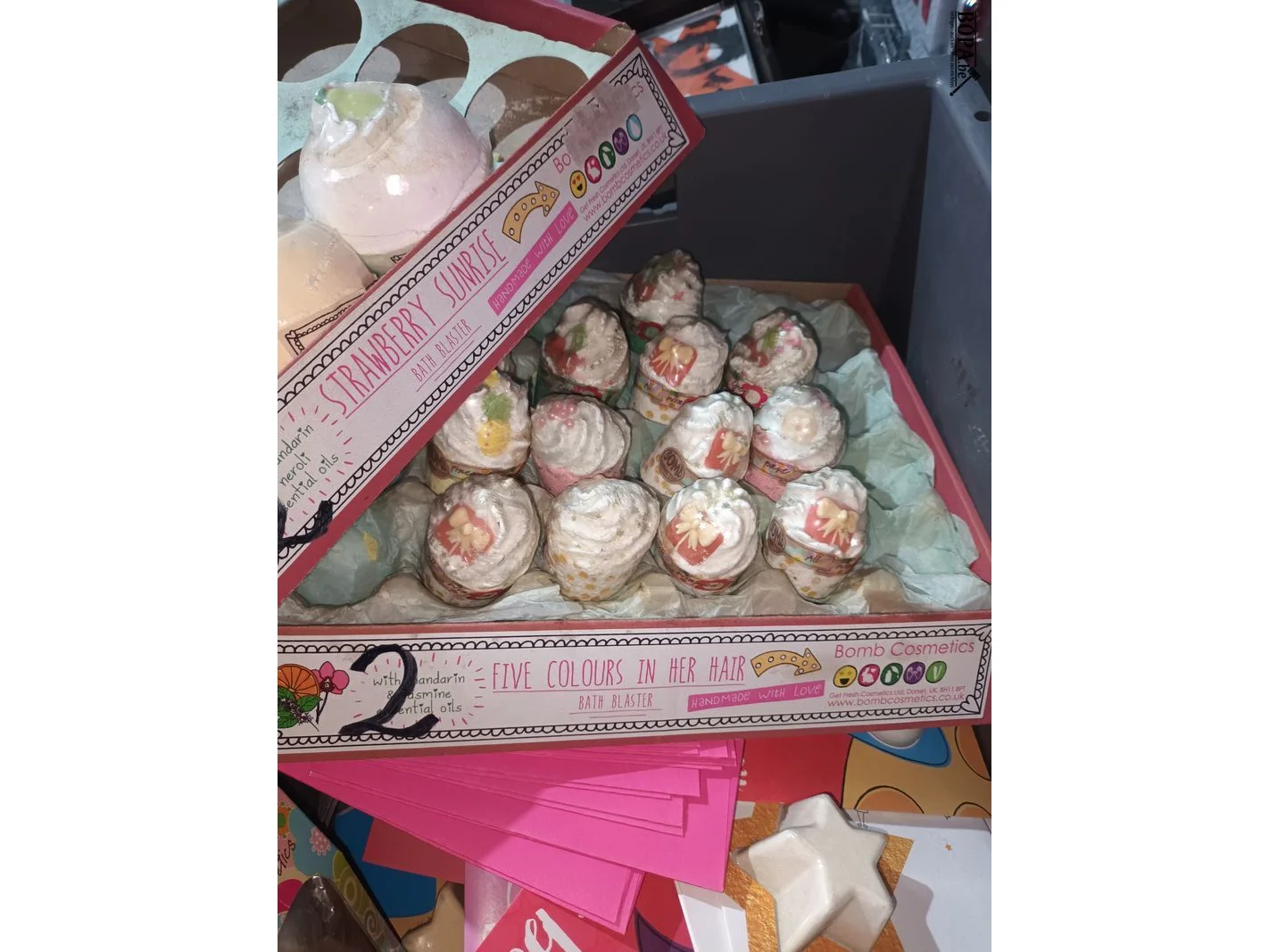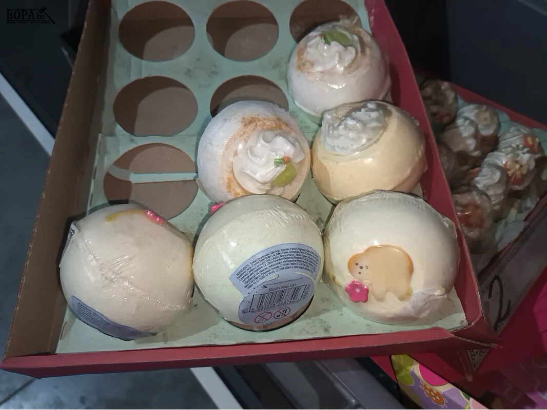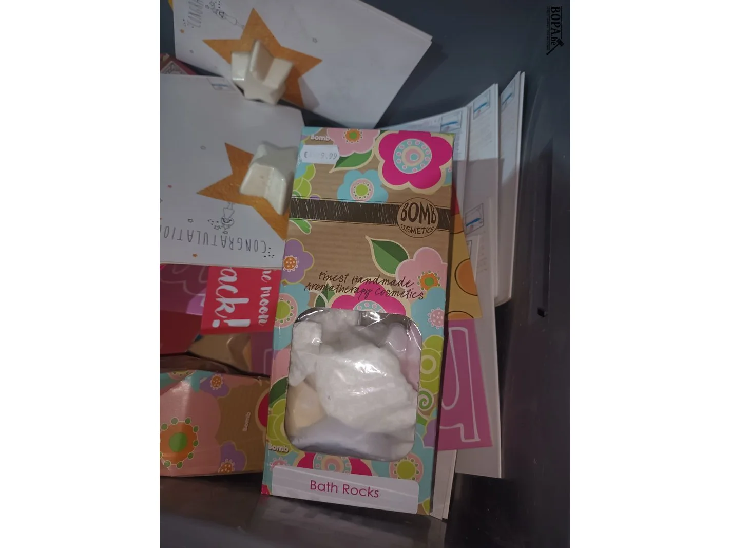 1 bak met bruisballen voor in bad. Bak niet inbegrepen.