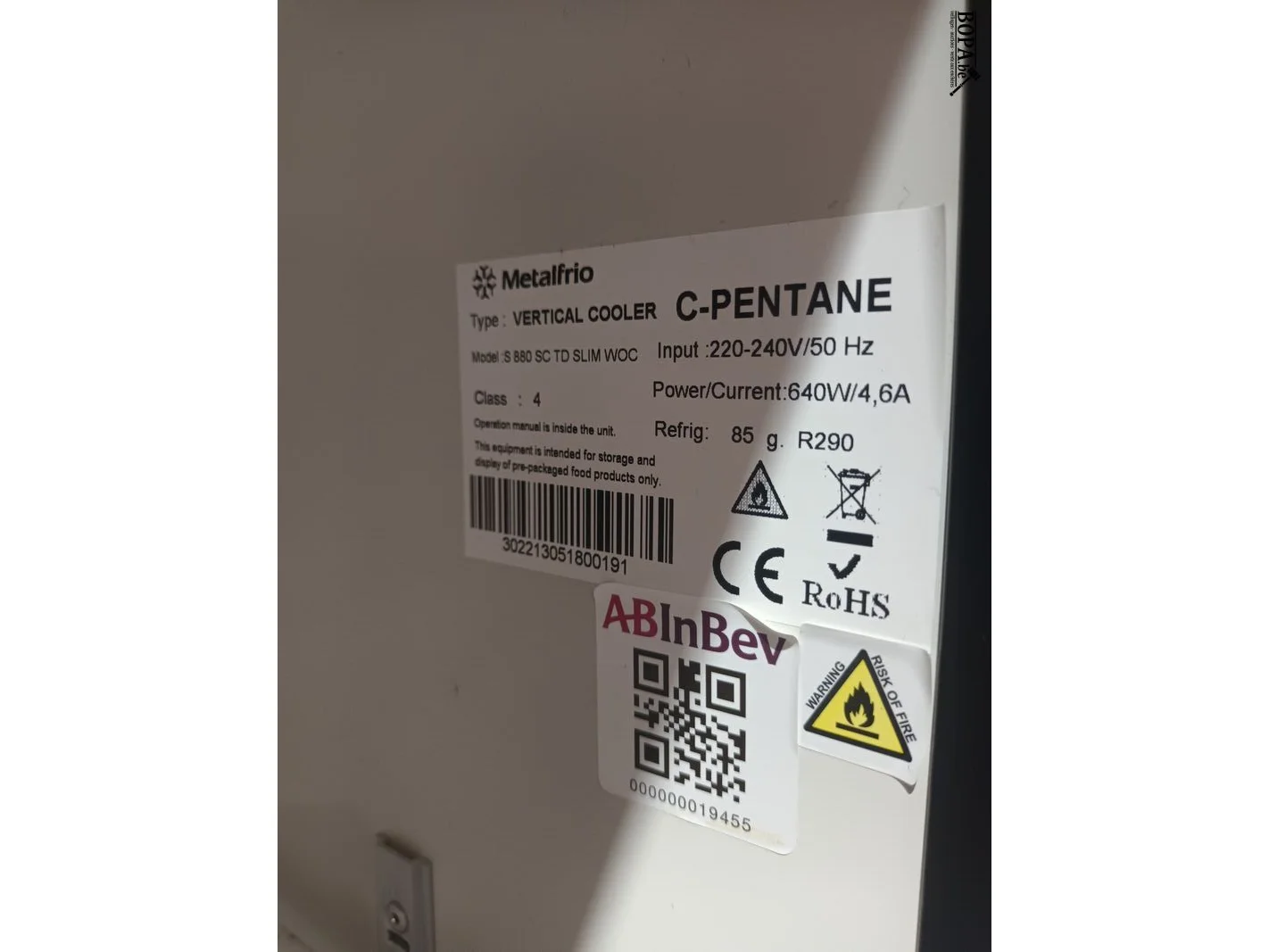 Drankenkoeler Jupiler met dubbele deur. Merk Metalfrio. 86 x 71 x 200 cm.