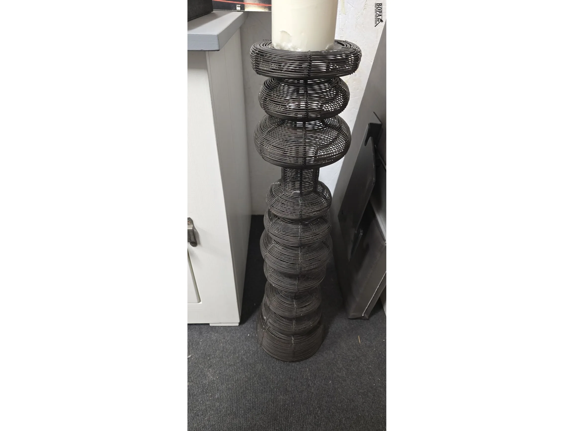 Moderne kandelaar met kaars H 83 cm