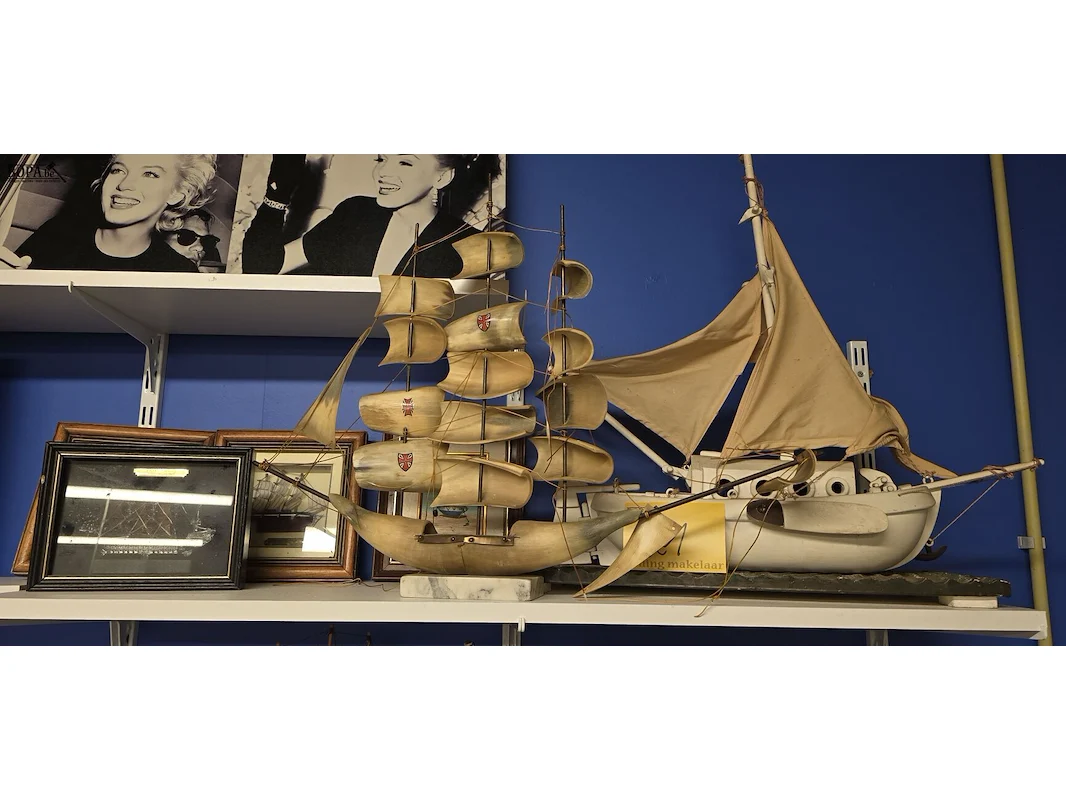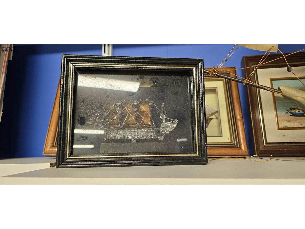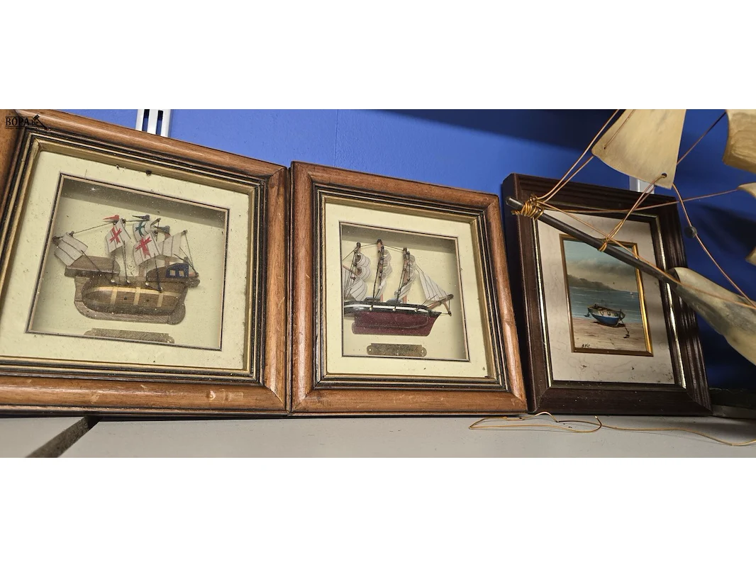 Modelboten, 2 stuks L ong 59 en 52 cm en 1 kader en 3 drie dimensionele kaders met bootje ingewerkt