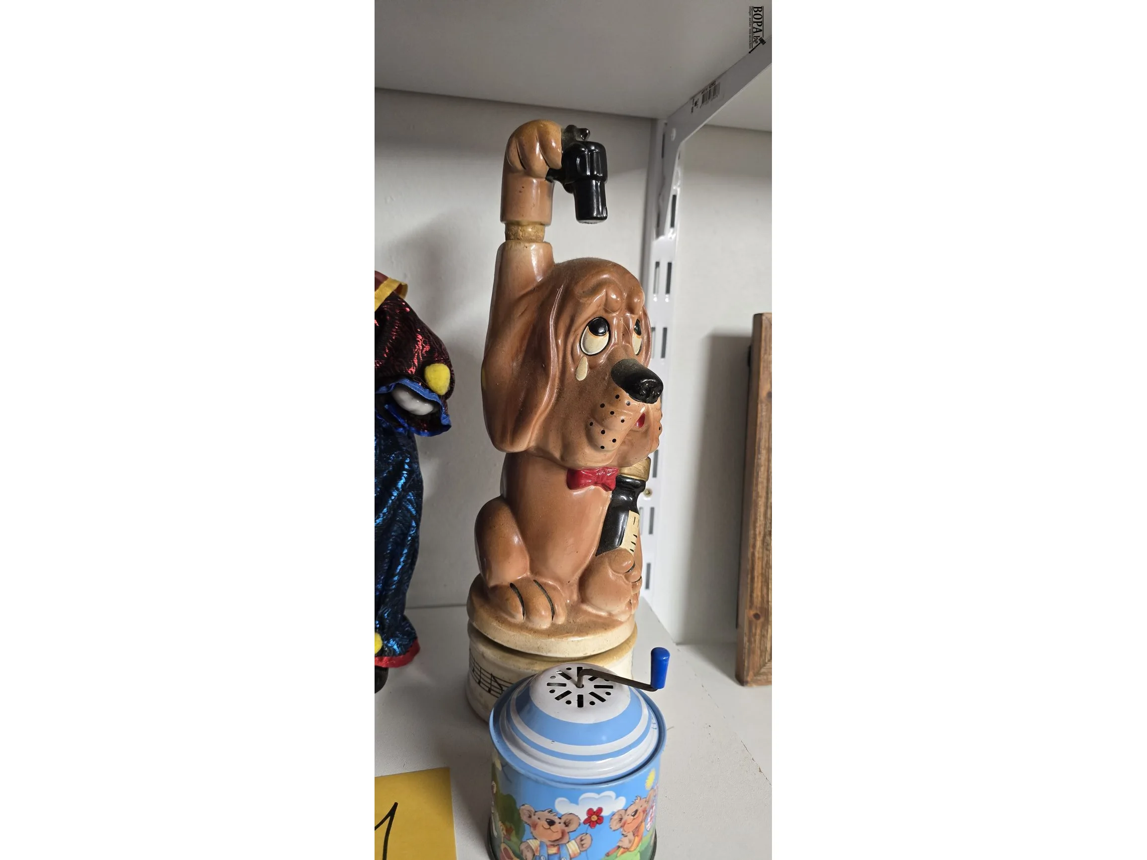 Lotje diversen, clown met muziek, blikken doos , Draaiende hond met muziek en kleine muziekdoos