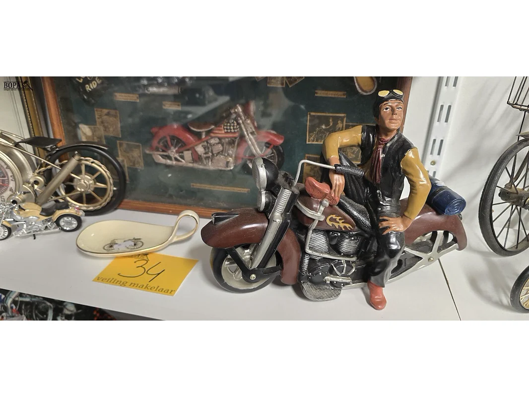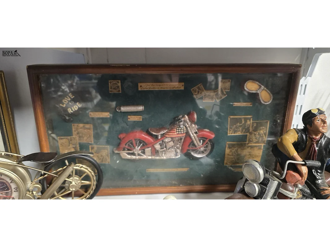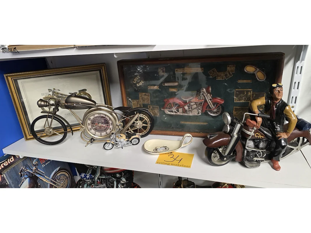 Moto lot, moto met man, moto met uurwerk en kleine moto, 2 kaders 3d en schaaltje
