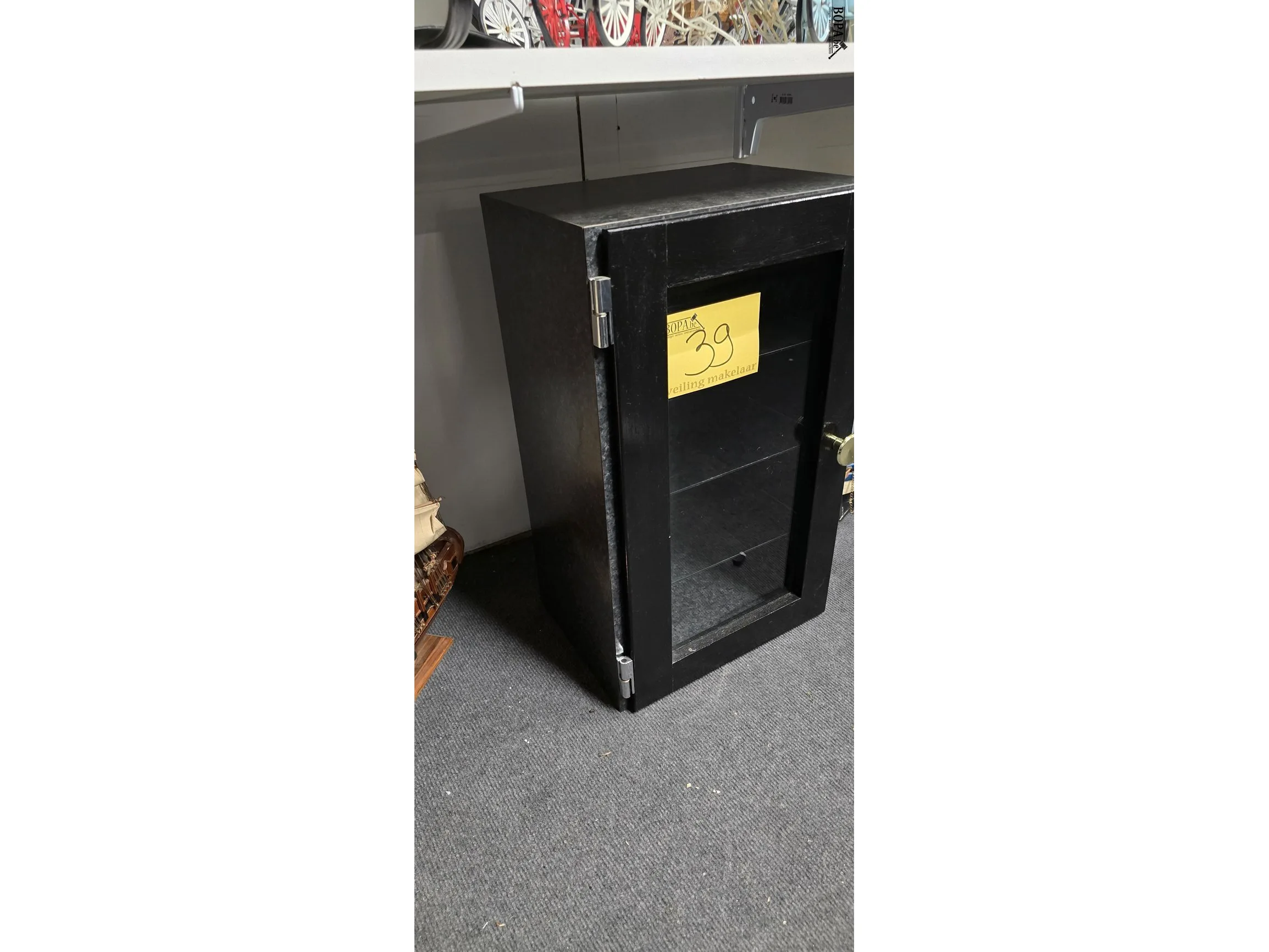 Lot 39 - zwart vitrine kastje met glazen legplankjes