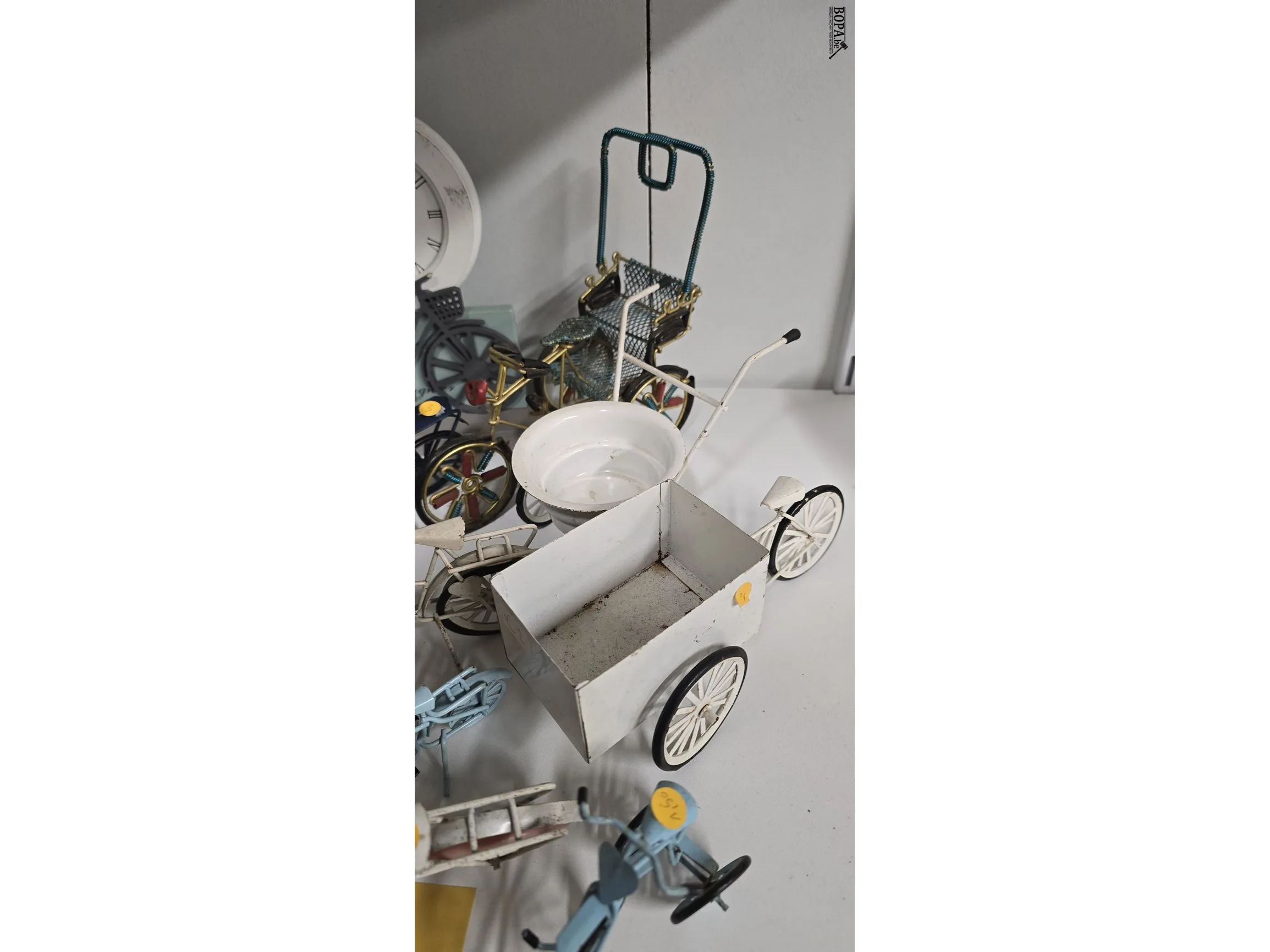 Lot 46 - lotje metalen fietsjes en houten wandklok