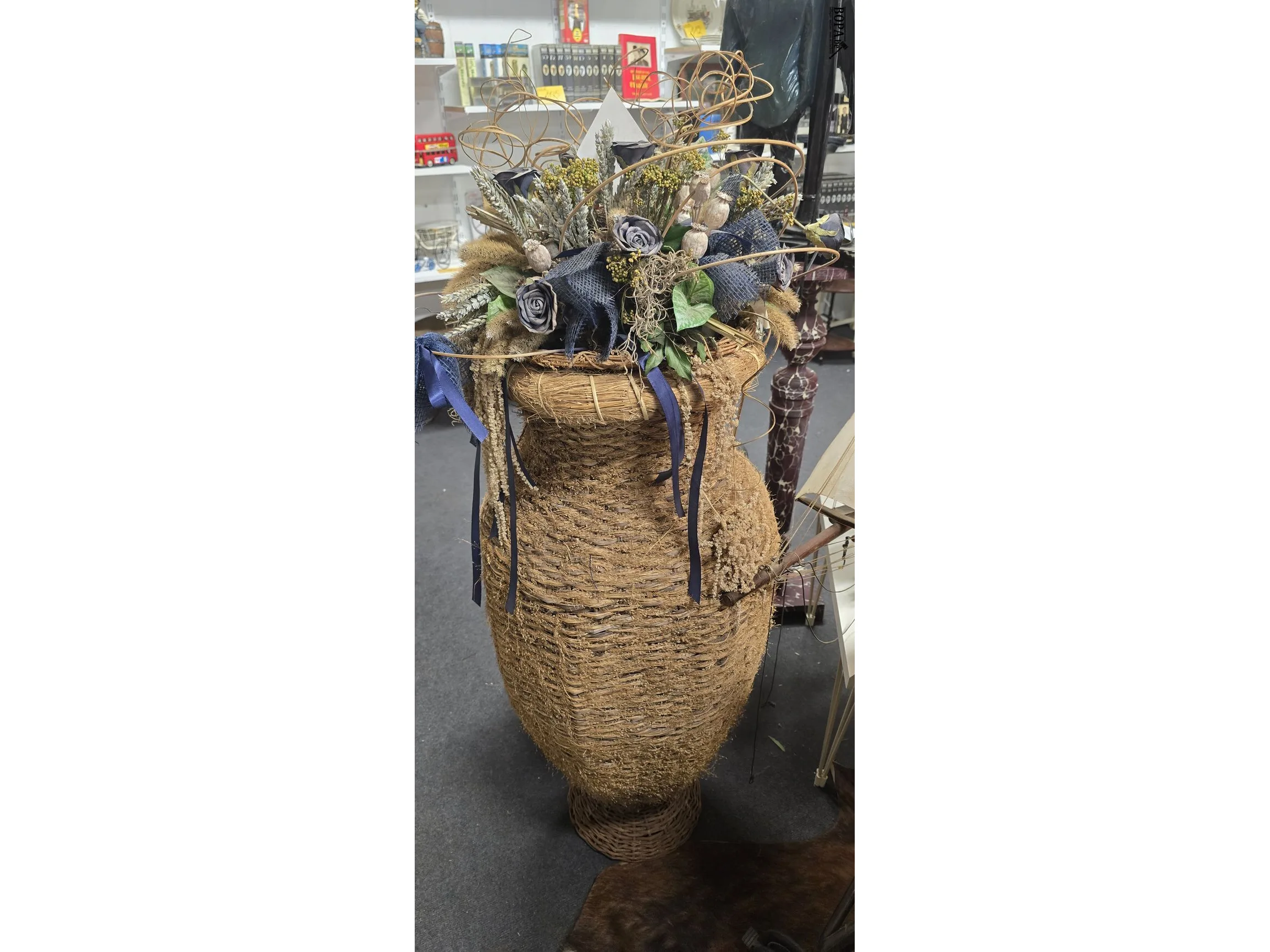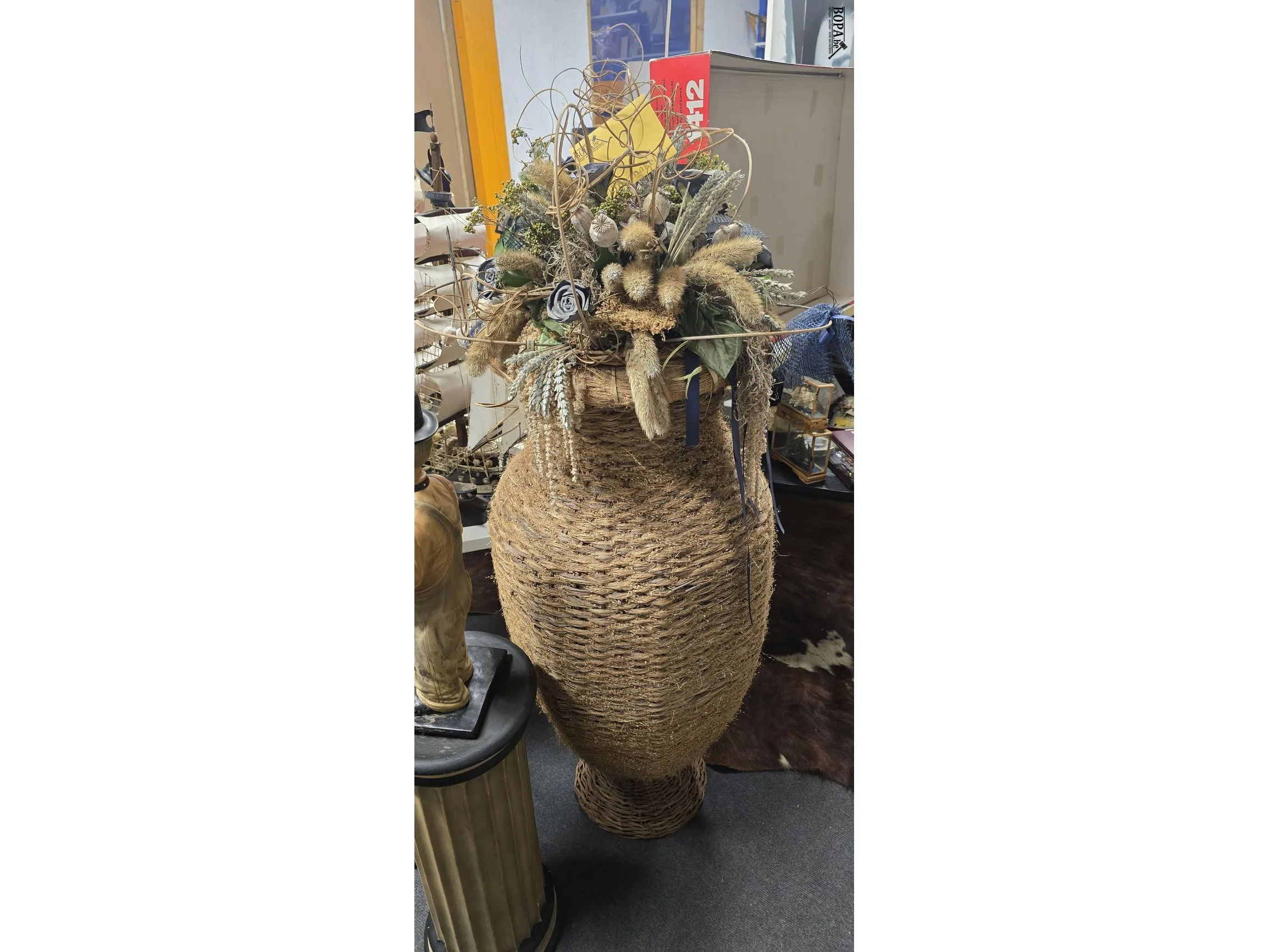Lot 62 - mooie grote rieten vaas met droogbloemen