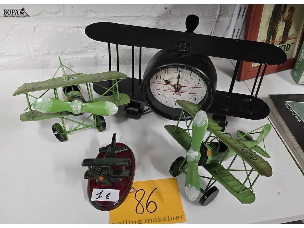 Vliegtuigjes 4 stuks waarvn 1 met klok