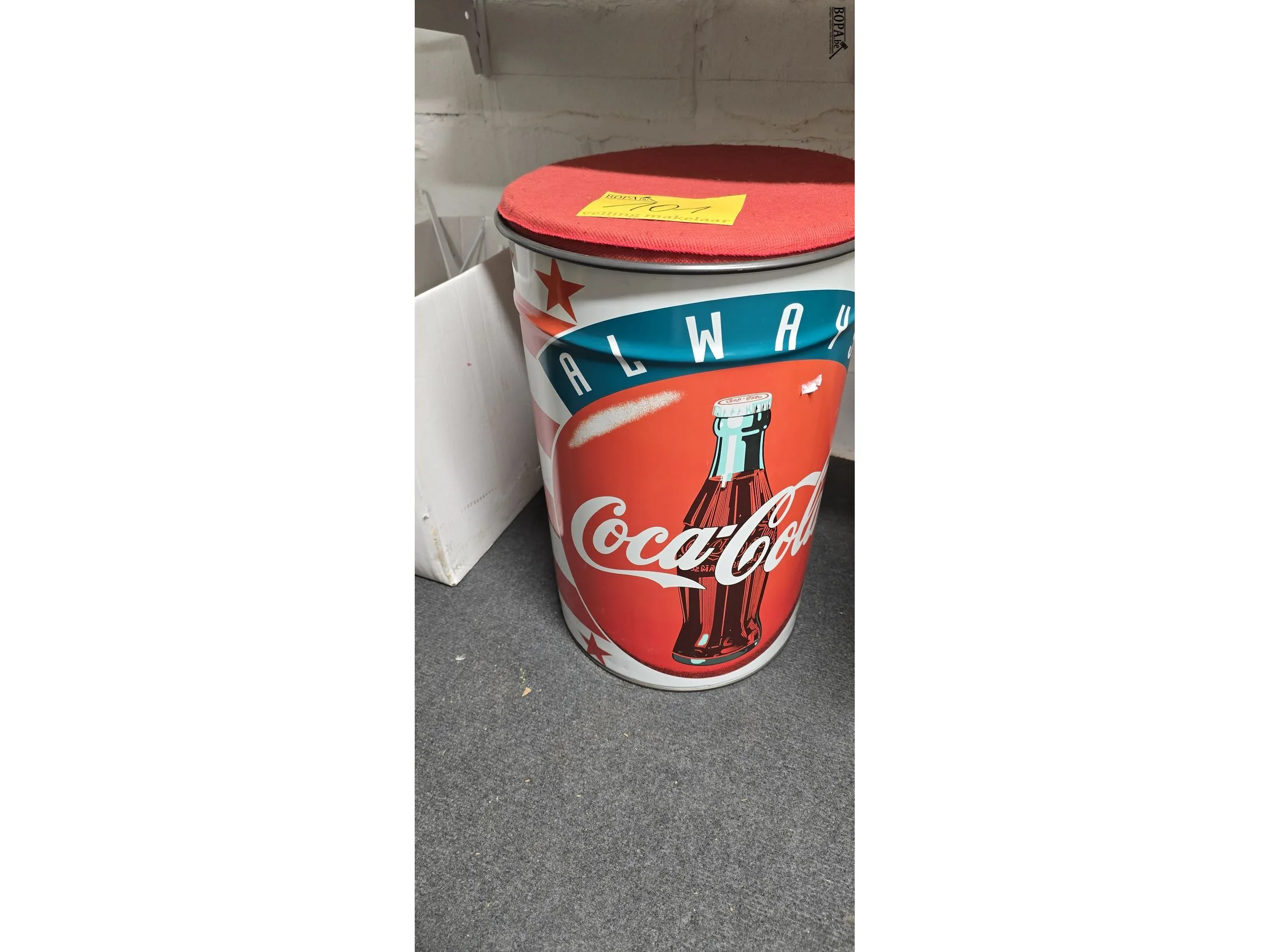 Lot 101 - coca cola metalen poef met kussen