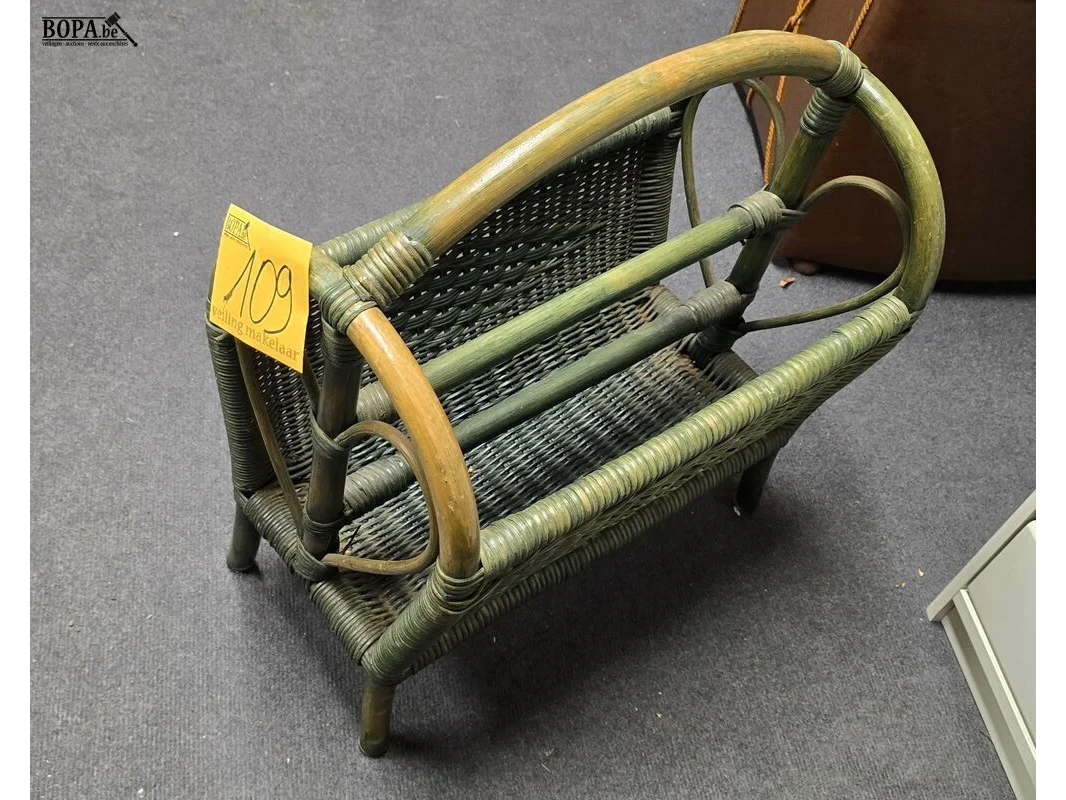 Lot 109 - rotan vintage krantenrek groen