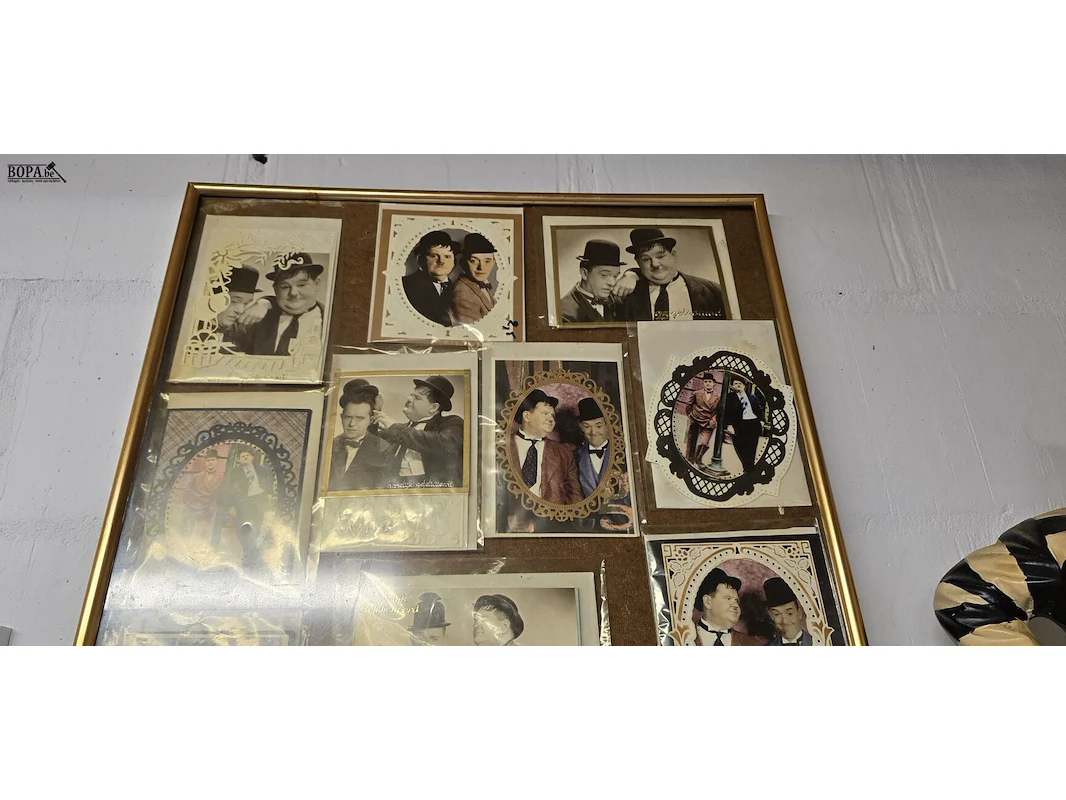 Kader met diverse wenskaarten van Laurel & Hardy