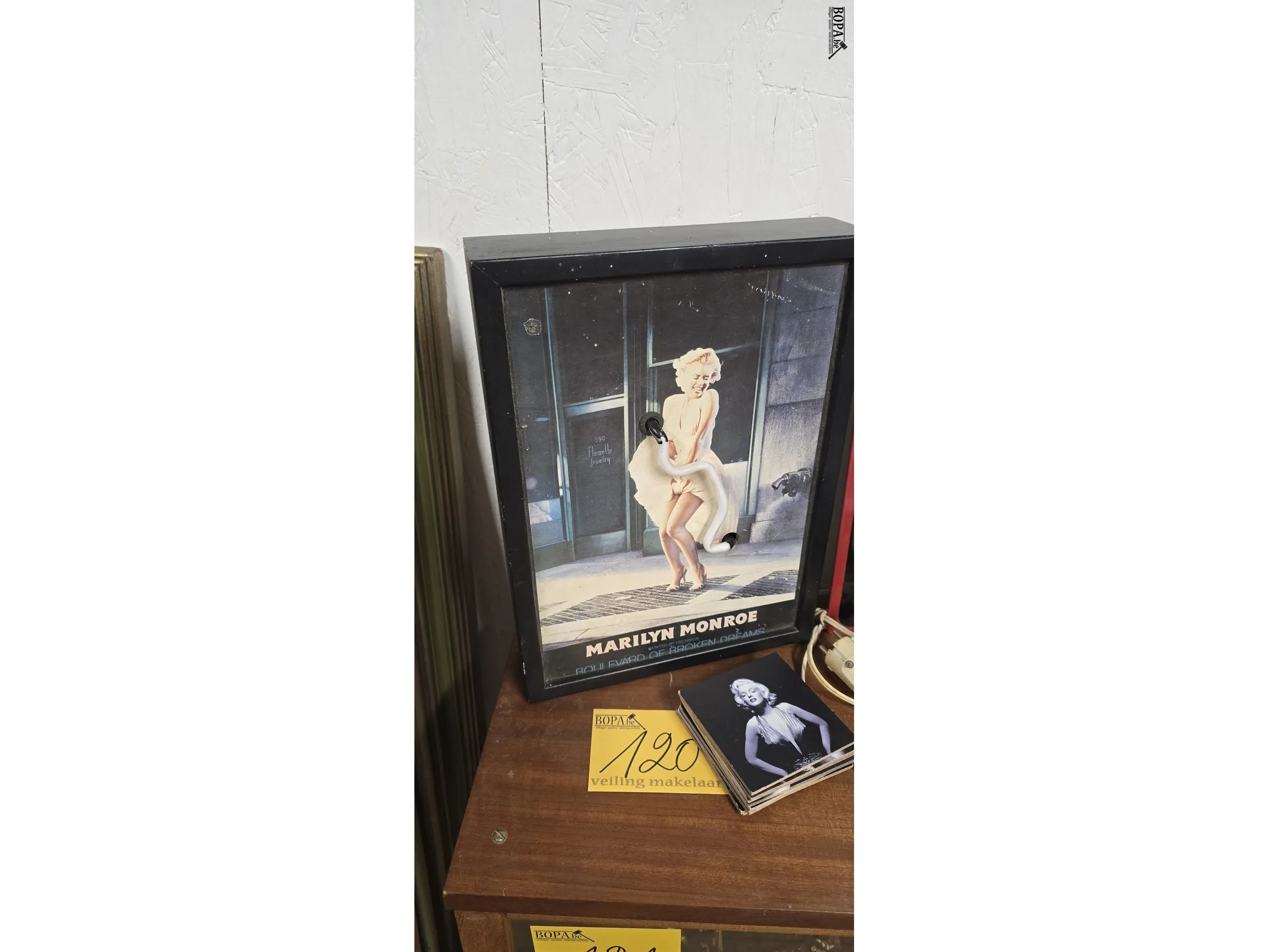 Marilyn Monroe metalen platen, kader met licht, opbergbox, houten fotokadertjes 16 stuks