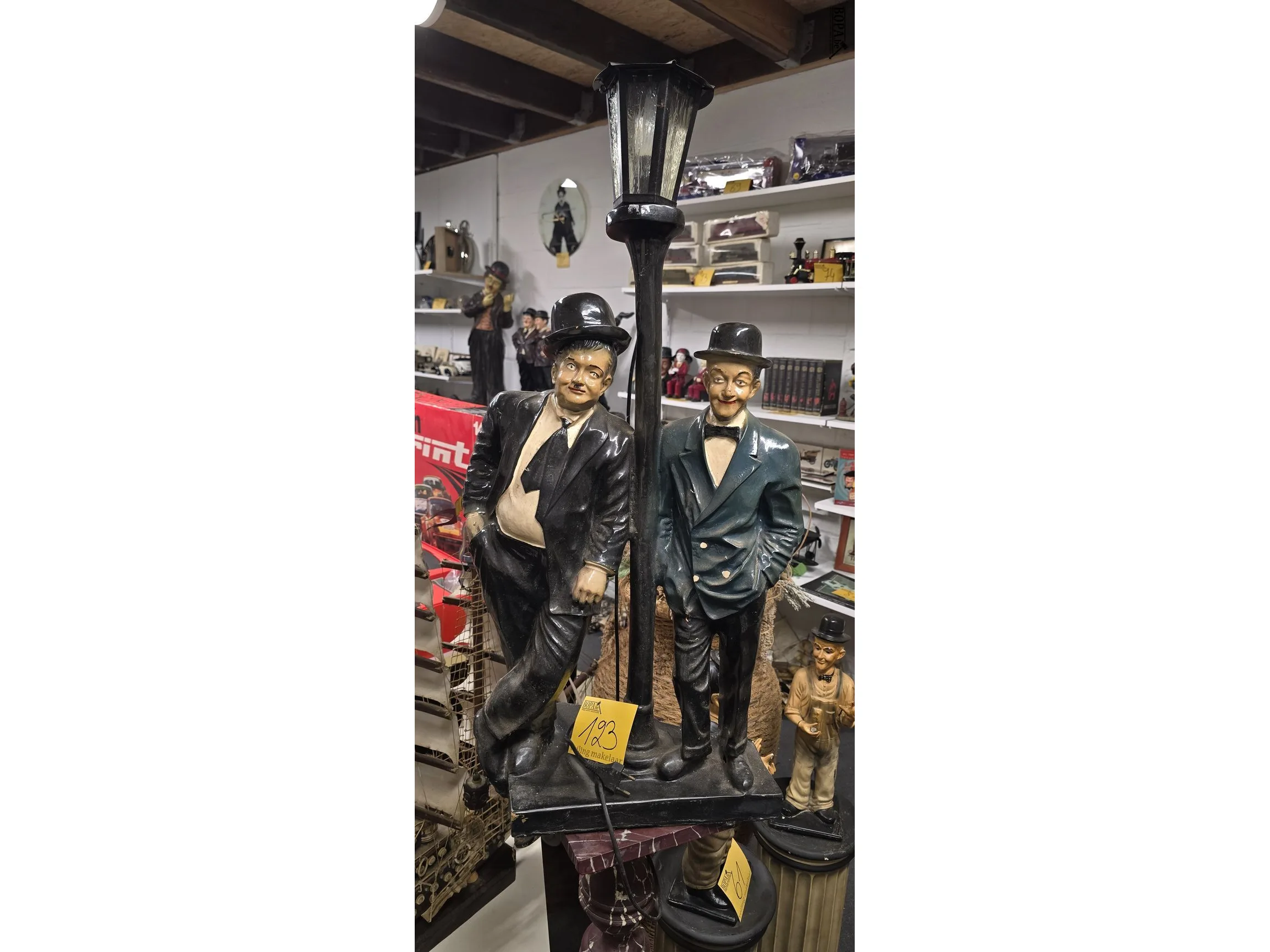 Lot 123 - laurel & hardy leunend tegen lantaarn paal