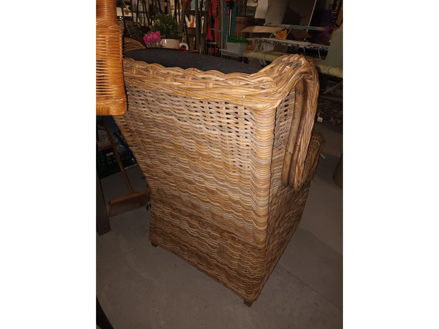 Rotan armzetel met kussens. 70 x 80 x 105 cm.