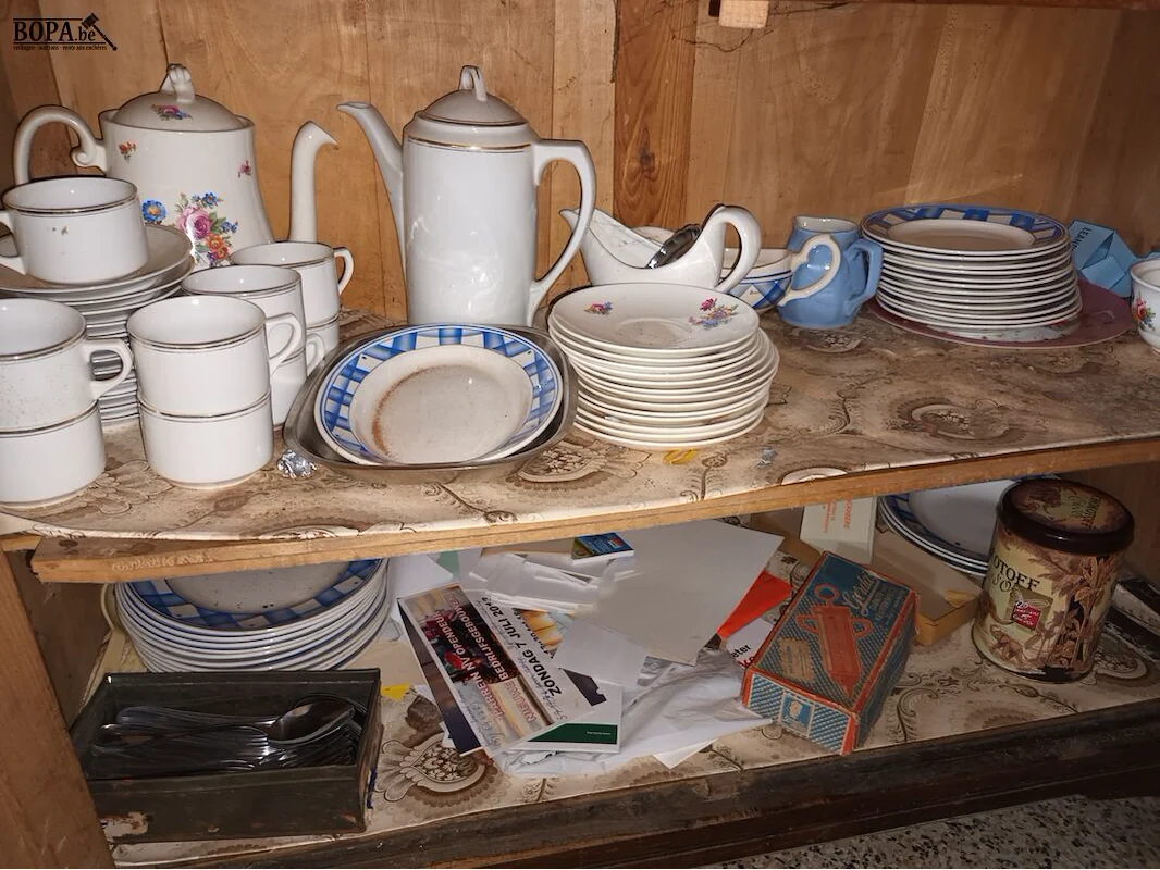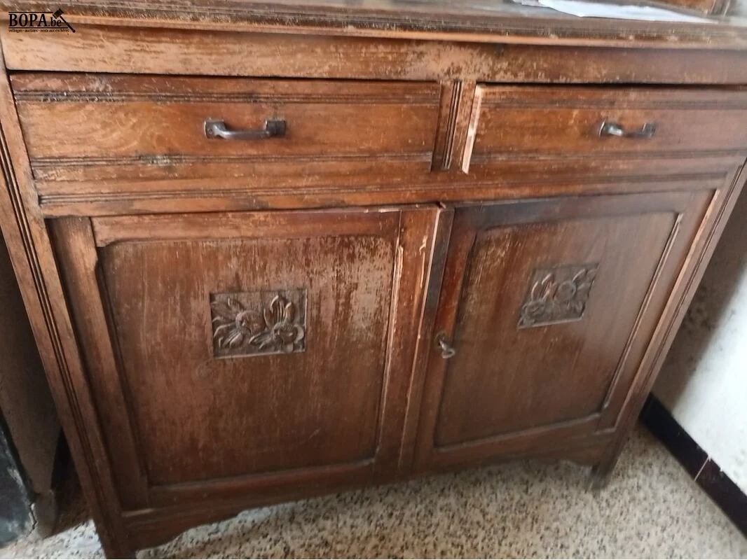 Art deco buffet kast met inhoud. In 2 delen. 118 x 48 x 215 cm.