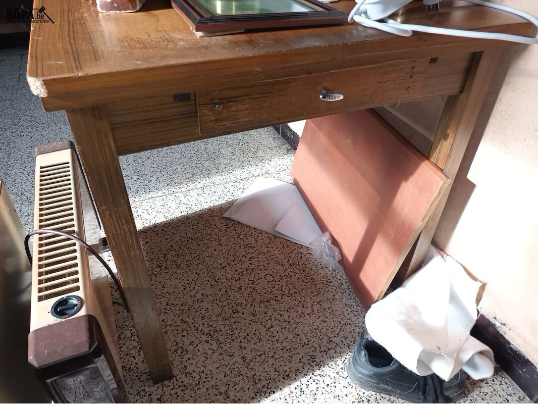 Vintage uitschuifbare tafel met slijtage op het bovenblad. 148 x 84 x 76 cm.
