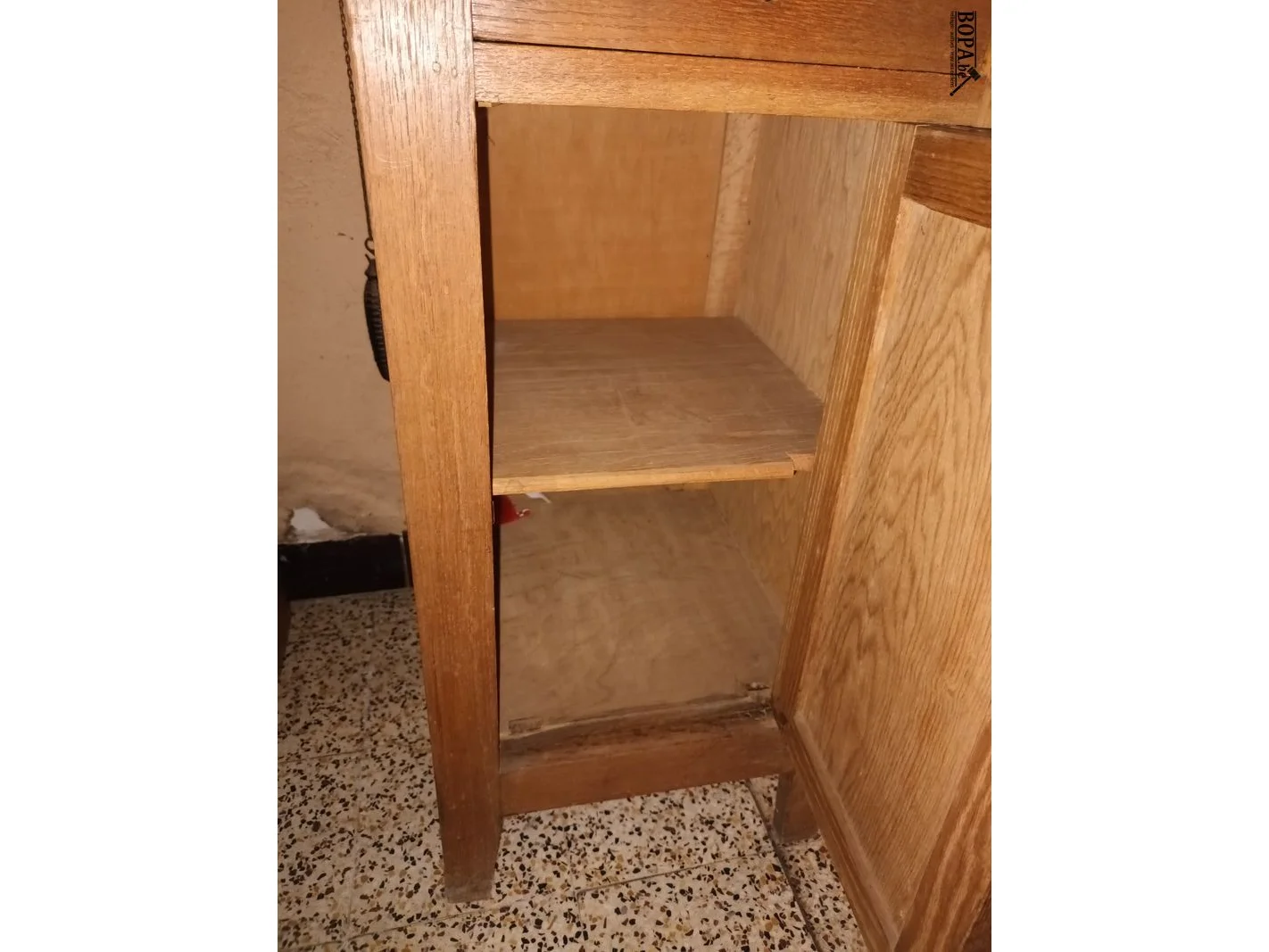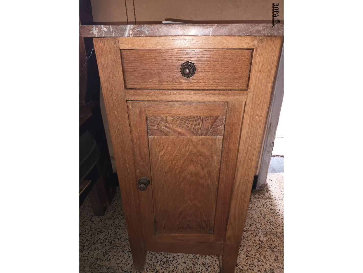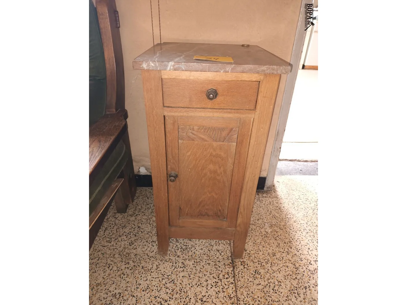 Art deco bijzetkastje met marmeren blad. 41 x 41 x 80 cm. Uit het marmeren blad is een hoekje uitgesneden.