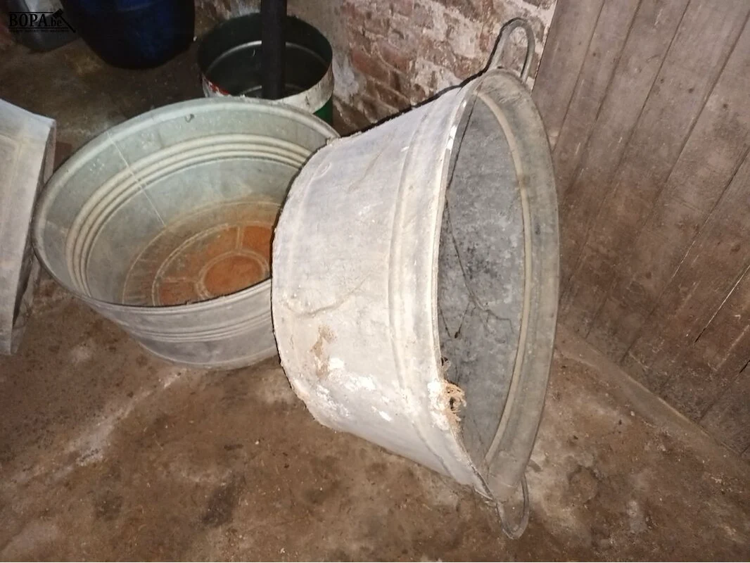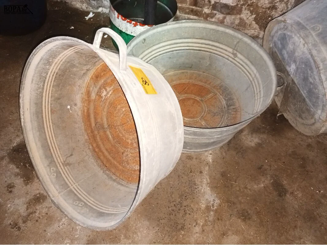 Zinken kuip. 3 stuks. Diameter 65 cm. Hoogte 30 cm.