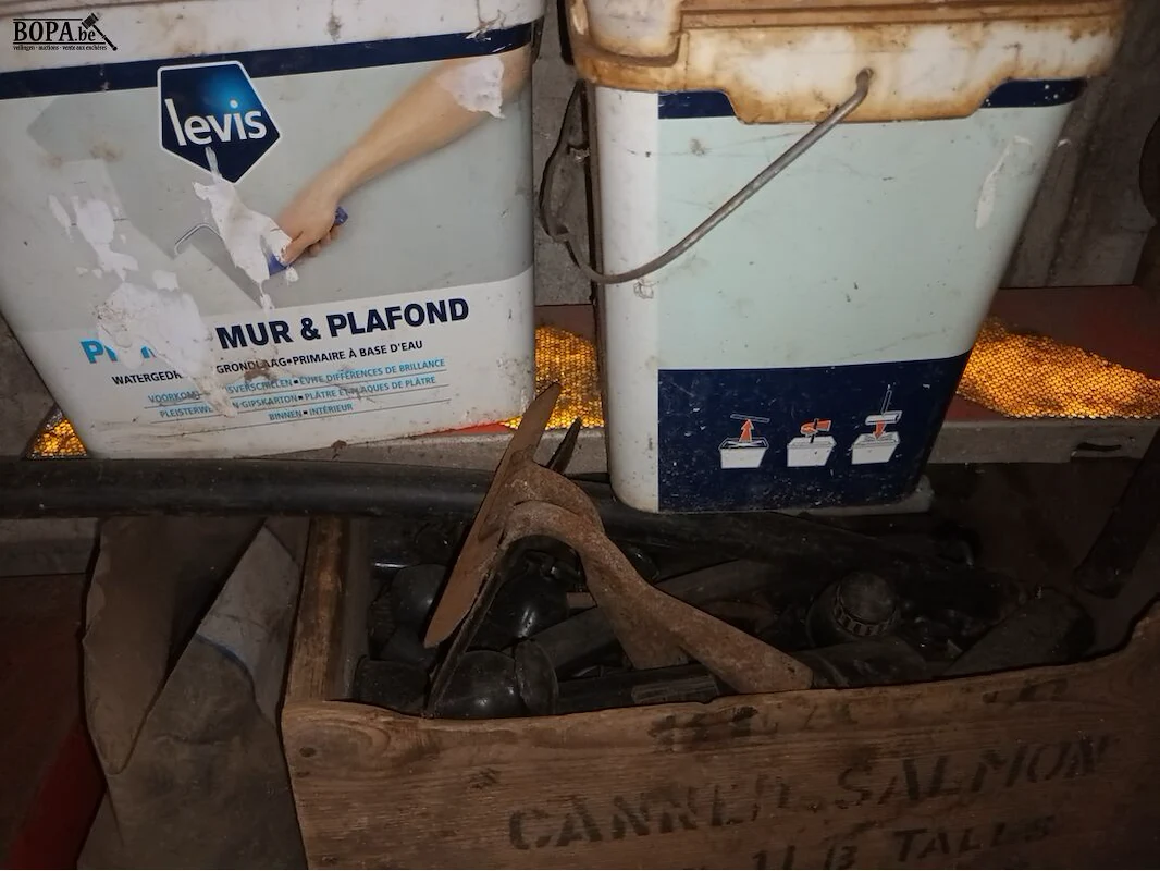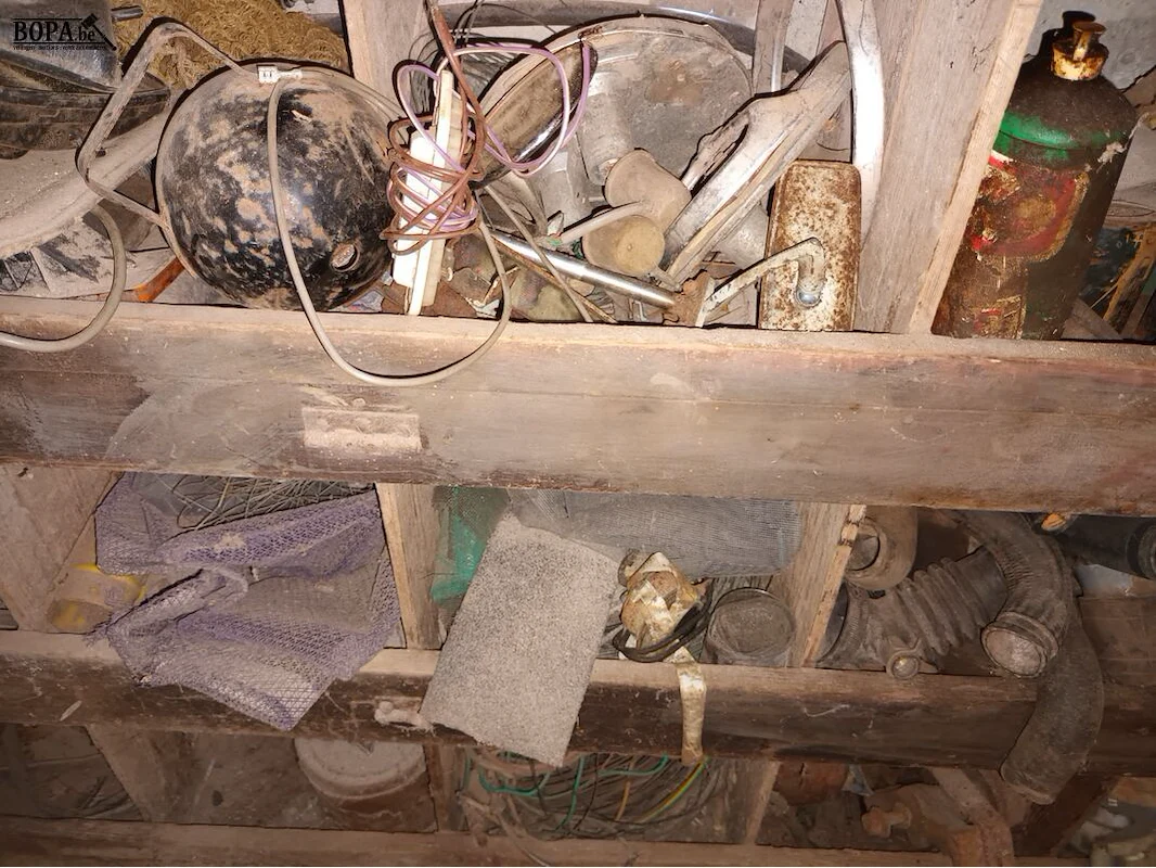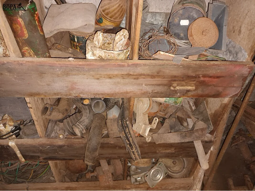 Auto onderdelen en materiaal. Inhoud wandkast.