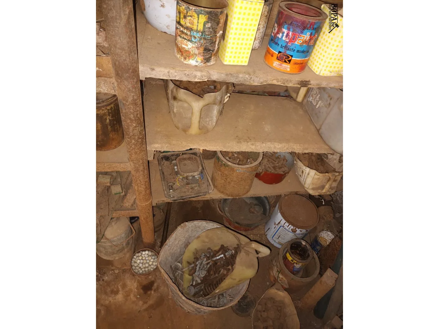 Divers materiaal en aangebroken potten producten en verf. Inhoud rek.