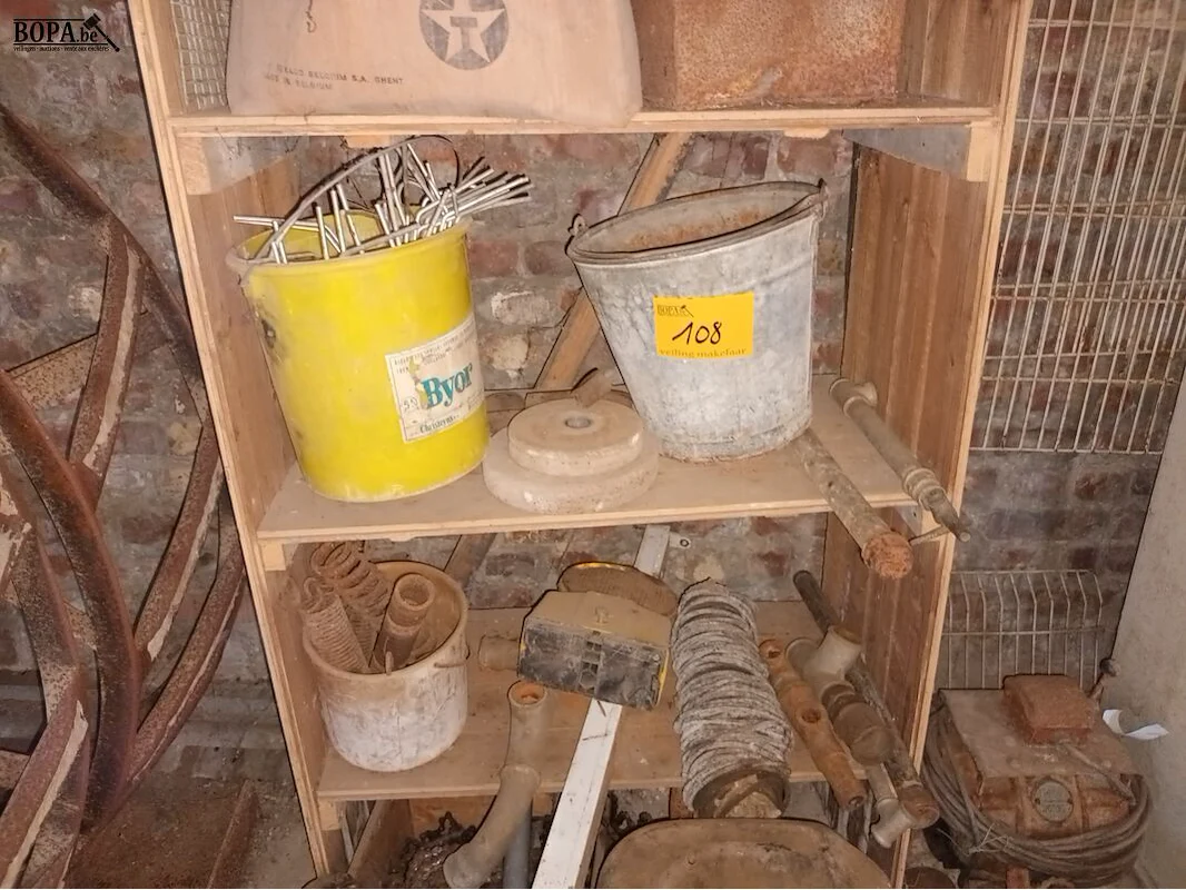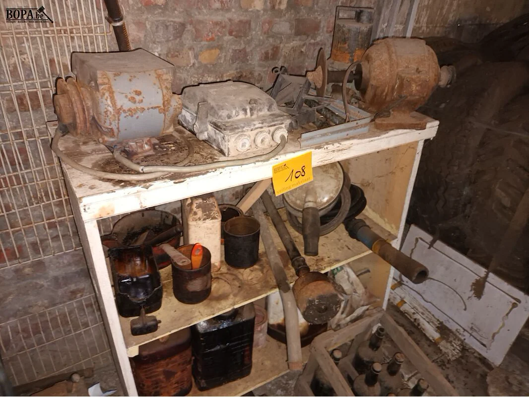 Diverse motoren, koppelstukken, producten. Inhoud van 2 kasten en alles tussen de kasten.