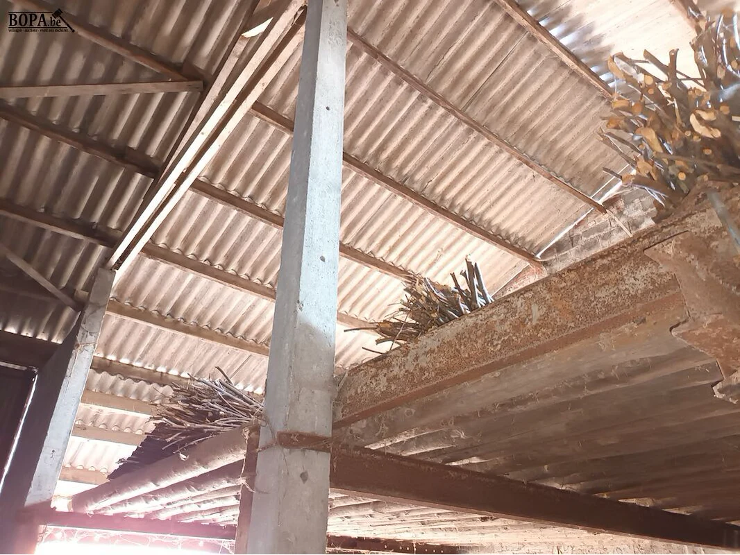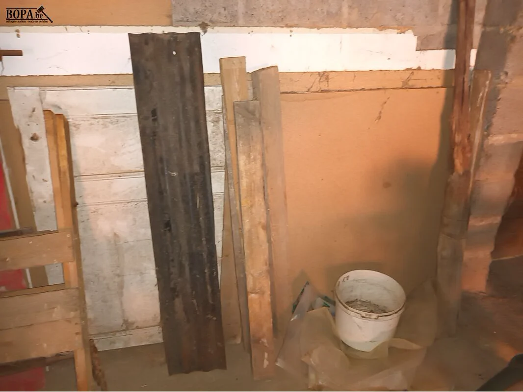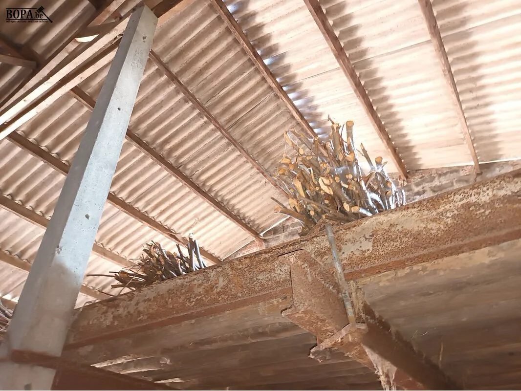 Lot hout en bundels takken onder het dakverdiep.