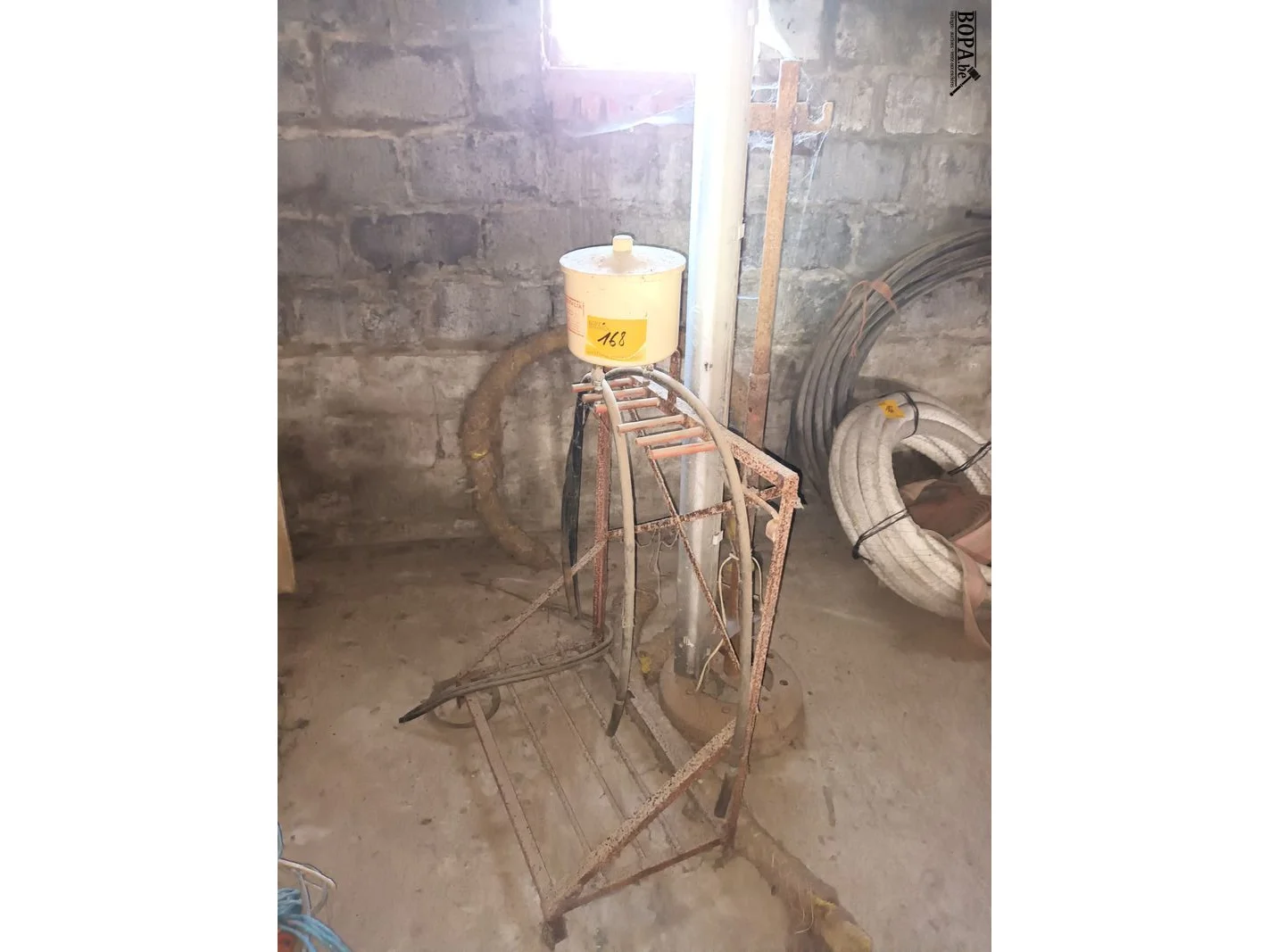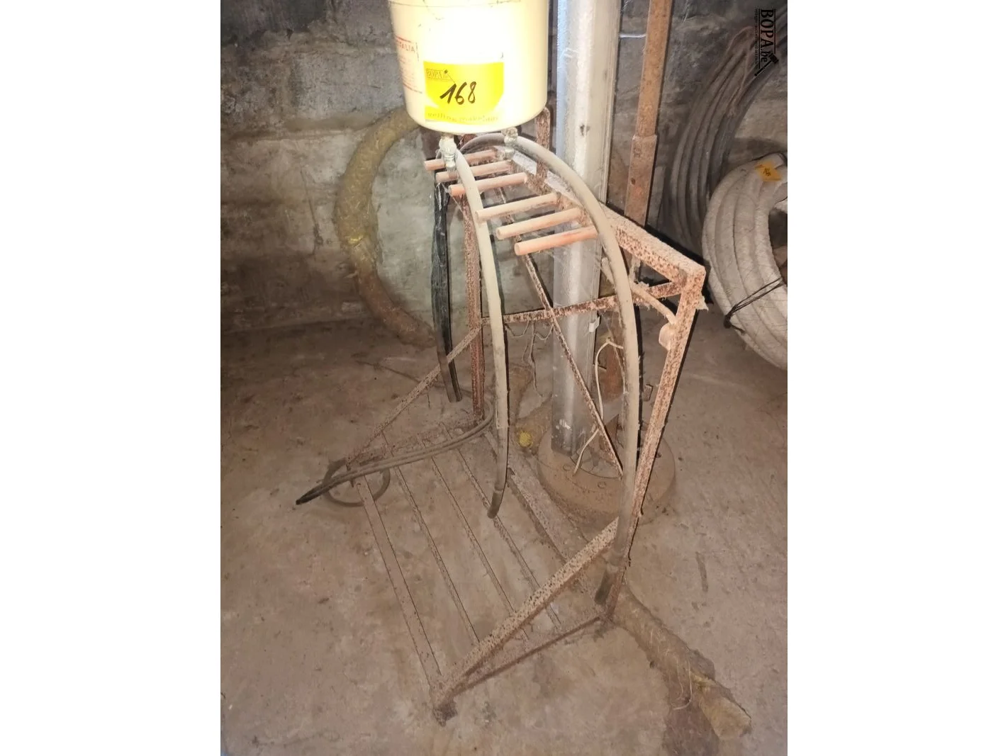 1 metalen statief met een tl-armatuur en 1 metalen statief met Westfalia bakje.