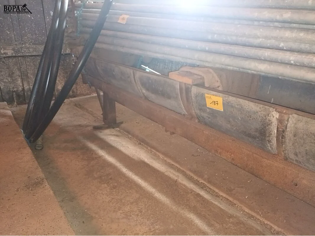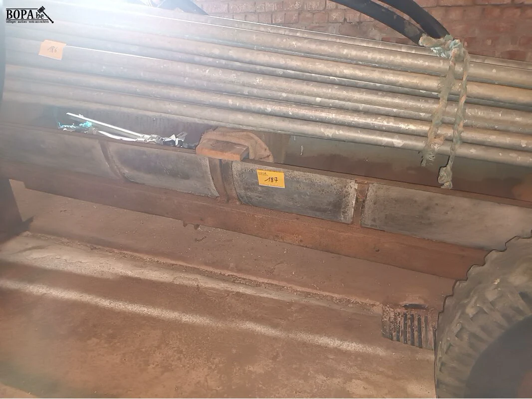 Lange tractorkar met 2 wielen. Gemaakt van halve tonnen.