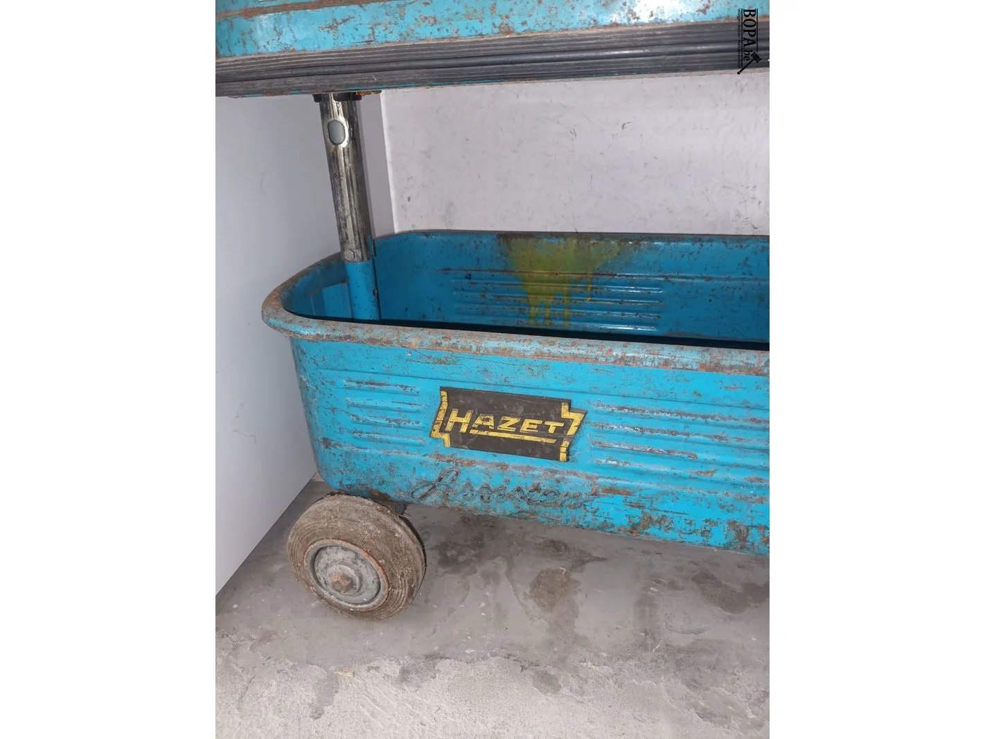 Vintage industriële metalen materiaalkar Hazet uit de jaren 60 (65 x 35 x 95 cm) en oliepompje.