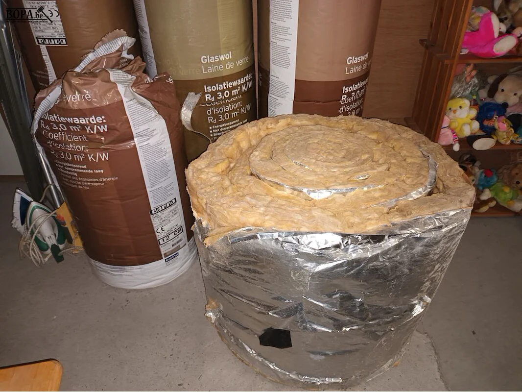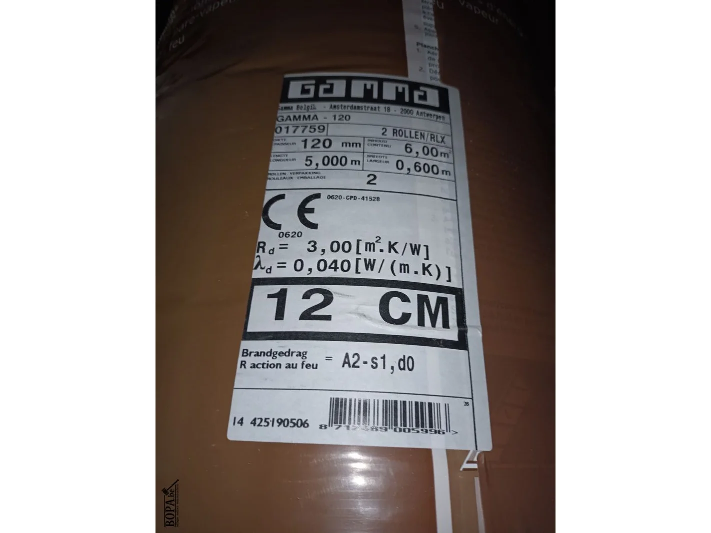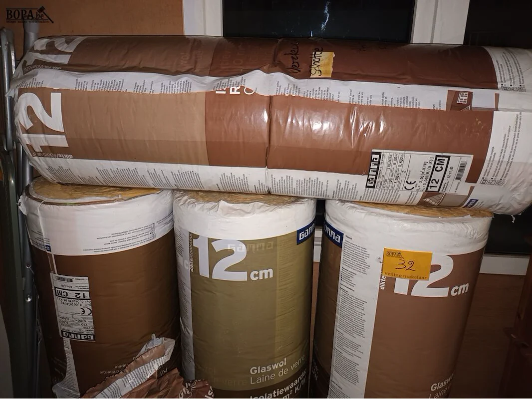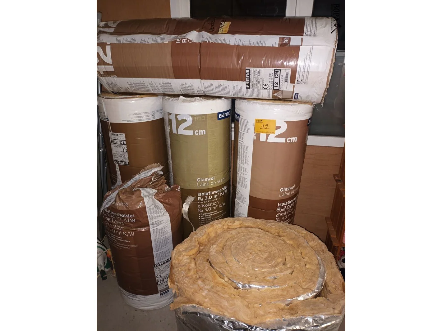 4 volledige rollen Gamma glaswol en 2 halve rollen Gamma glaswol.