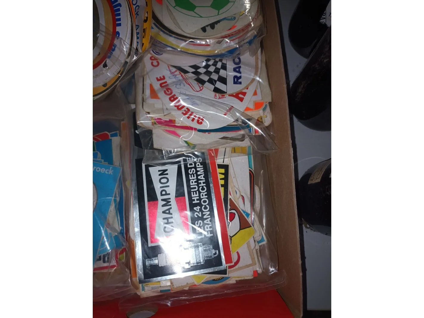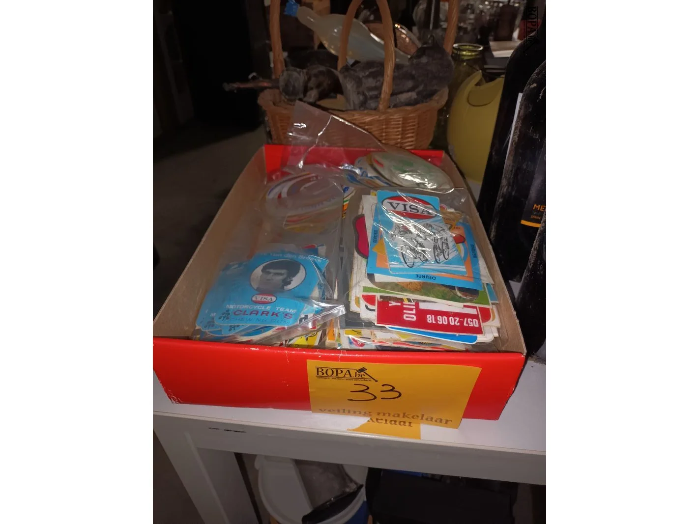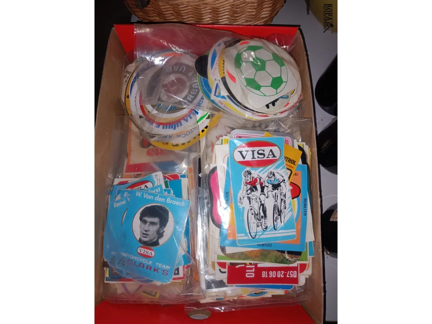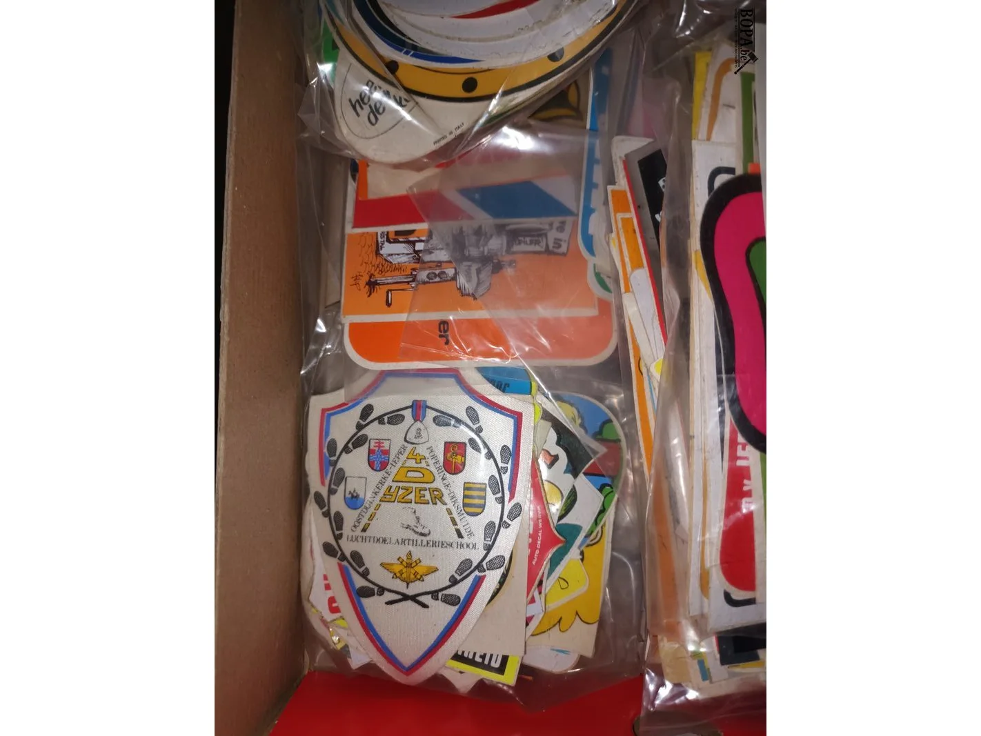 Doos met vintage verzamel stickers uit de jaren 70 en 80.