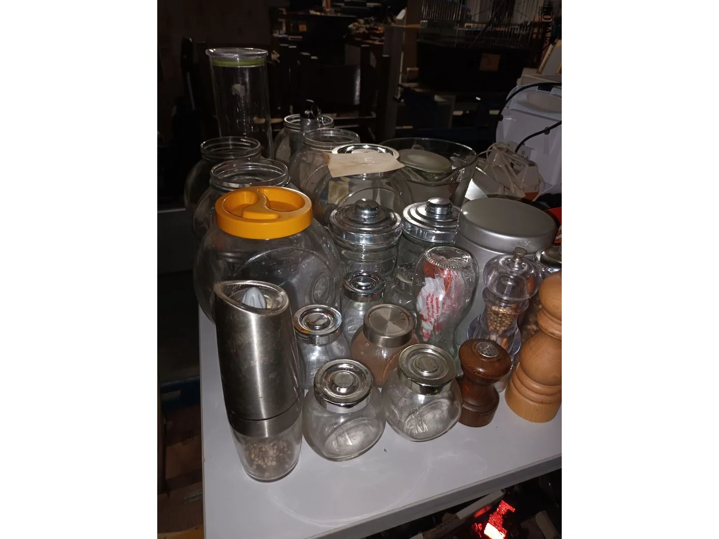 Lot 65 - bewaarpotten en pepermolens. 25 stuks